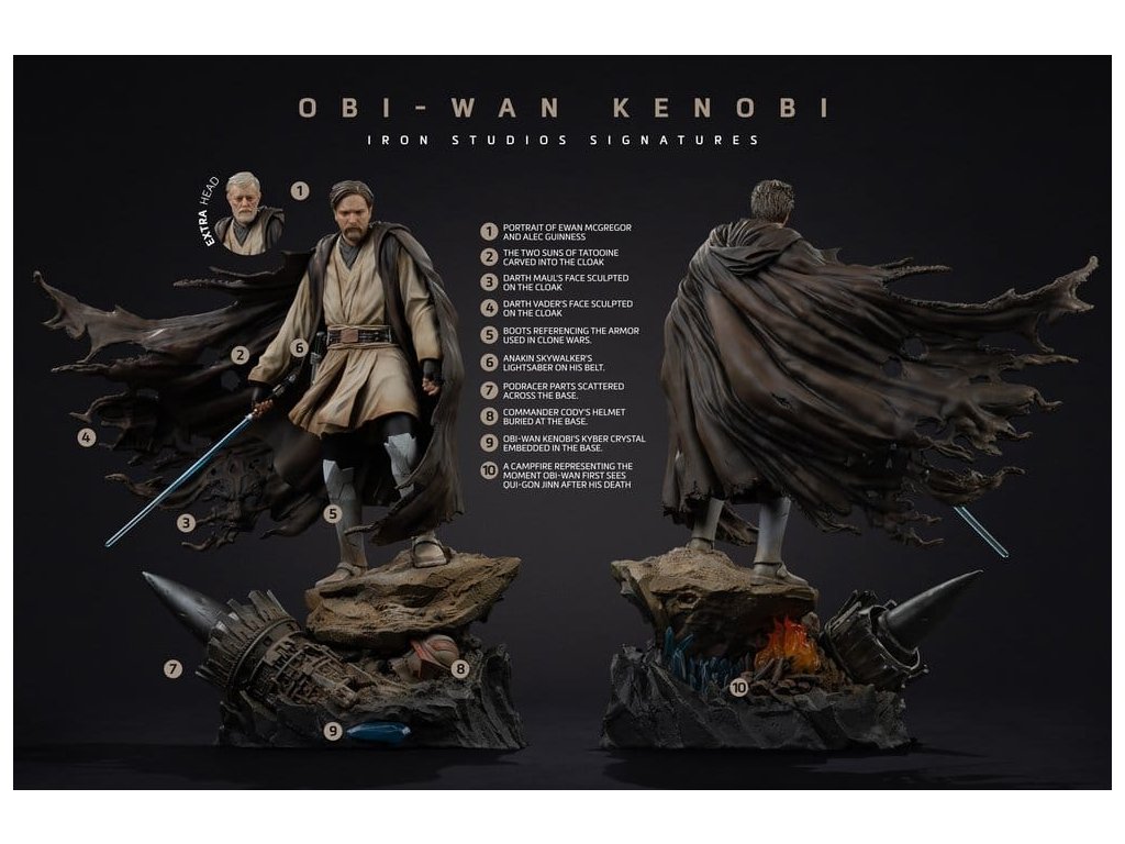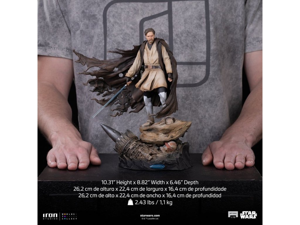 Iron Studios představuje Obi-Wan Kenobi - Art Scale 1/10 - Podpisy, kus, který vzdává hold jednomu z největších mistrů Jedi. S mečem světla v ruce a klidným výrazem se Obi-Wan objevuje s působivou přítomností a dokonalým detailem. Linky oblečení, strategický postoj a rafinovaná úprava dělají tento kus hodným té nejnáročnější sběratelky. Materiály a dokončení: Vyrobeno z polystone, s možnými částmi z pryskyřice, PVC a kovu. Dokončeno ručně malovanými detaily pro zvýraznění sochařství. Tato oficiálně licencovaná soška ze „Star Wars“ je vyrobena z Polyresin. Soška měřítku 1/10 měří přibližně 26,2 x 22,4 x 16,4 cm. Speciální funkce: Dva hlavové modely.
