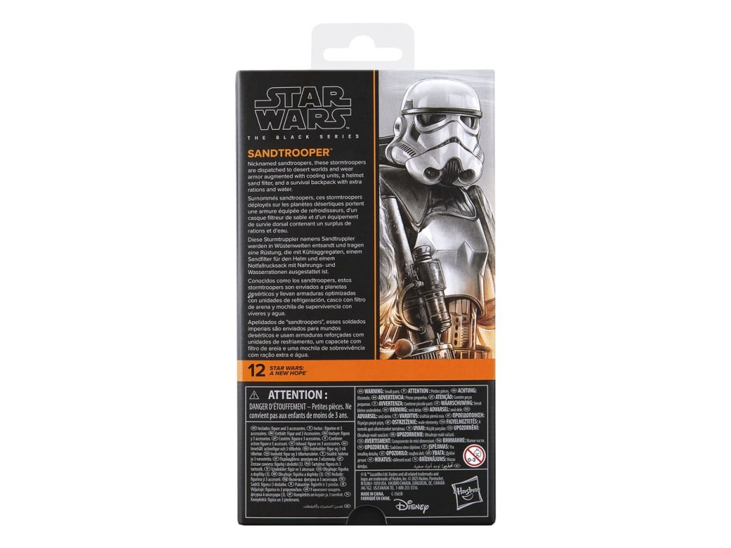 Star Wars The Black Series zahrnuje 6 palcové akční figurky, vozidla a předměty pro roli z více než 40letého odkazu galaxie Star Wars, které fanouškům umožňují vytvářet galaktické scény s věrností komicům, filmům, seriálům a dalším ze Star Wars. Tato akční figurka Star Wars od Hasbro je detailně zpracovaná tak, aby vypadala jako písečný voják ze Star Wars: Nová naděje. S vynikajícími rysy a dekorací, The Black Series představuje kvalitu a realismus, které milují oddaní fanoušci Star Wars. Ať je s vámi Síla! (Další produkty se prodávají samostatně. Dostupnost podléhá změnám.)