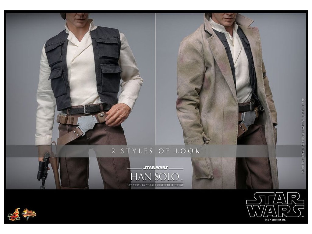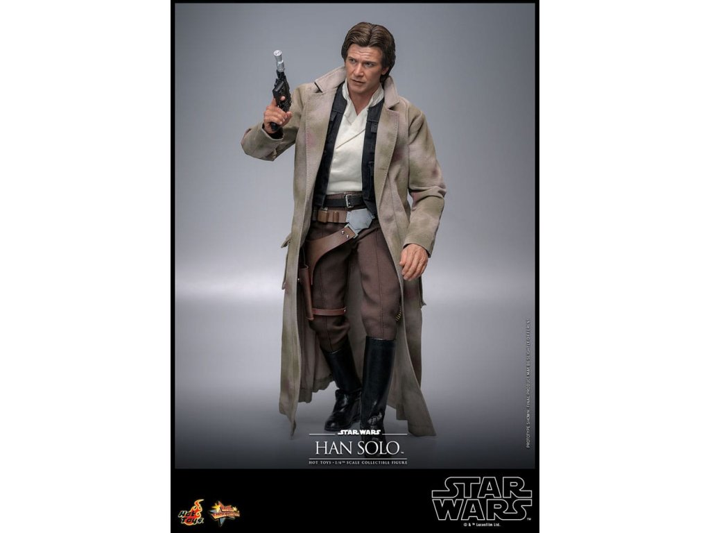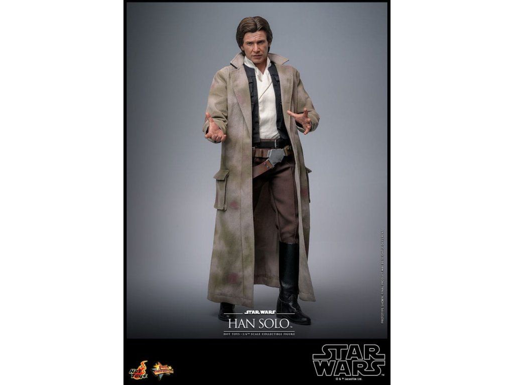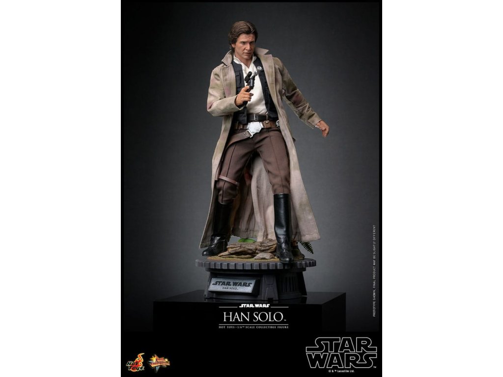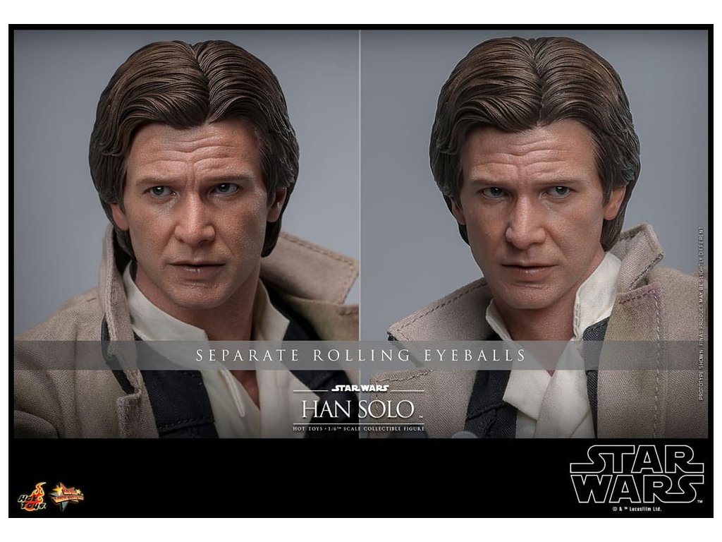 Han Solo vzešel z chudinského dětství na surových ulicích Corellia a stal se jedním z hrdinů Rebel Alliance. Jako kapitán Millennium Falconu přišel Han a jeho co-pilot Chewbacca na chuť myšlence galaktické svobody, když se přidali k Luke Skywalkerovi a princezně Lei Organě v boji proti Impériu. Sideshow a Hot Toys s nadšením představují zcela novou šestou škálovou figurku Hana Sola na základě monumentálního Star Wars: Návrat Jediho! Výsostně přesná sběratelská figurka Hana Sola je dovedně vyrobena podle jeho vzhledu ve filmu. Nese úchvatný hlavový model s velkou podobností a otáčecími očními kuličkami, jemně ušitým oblekem s maskáčovým kabátem, blasterem a základnou figurky ve stylu Endoru! Tato sběratelská figurka Hana Sola v šesté škále bude se dokonale hodit do sbírky jakéhokoli fanouška sběratelských předmětů Star Wars!
