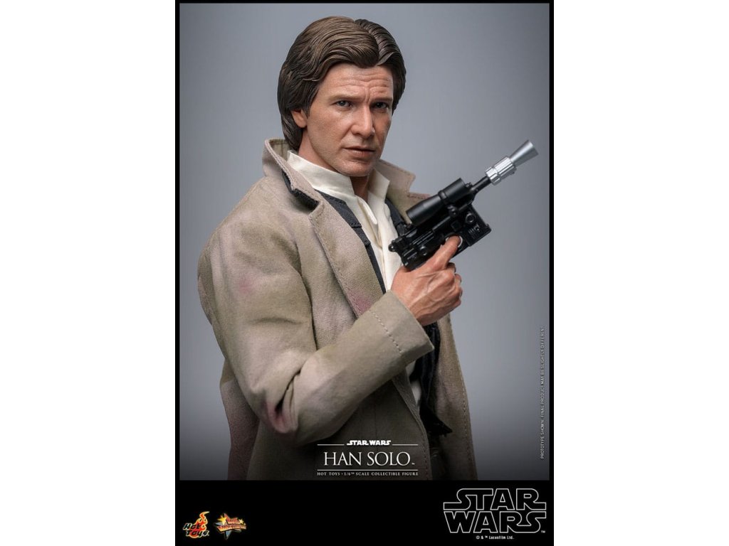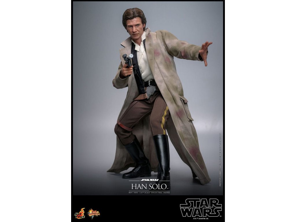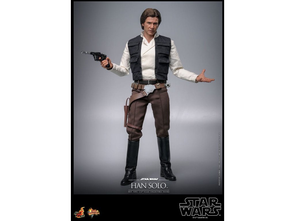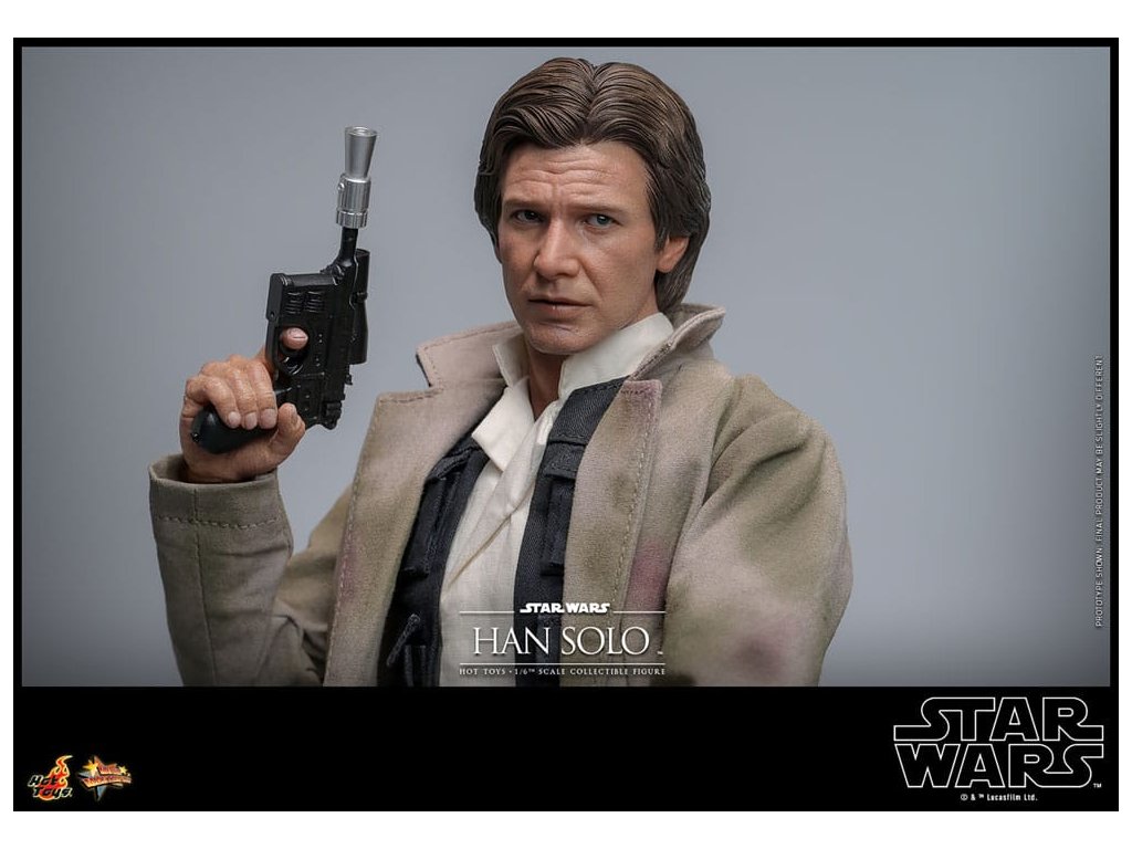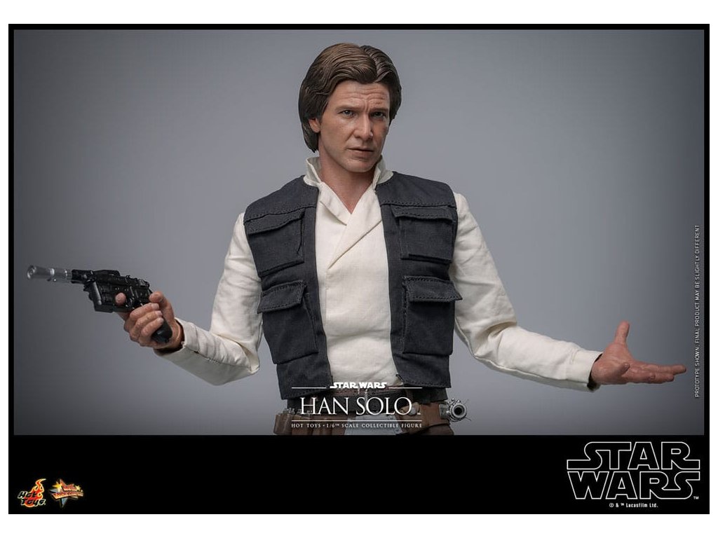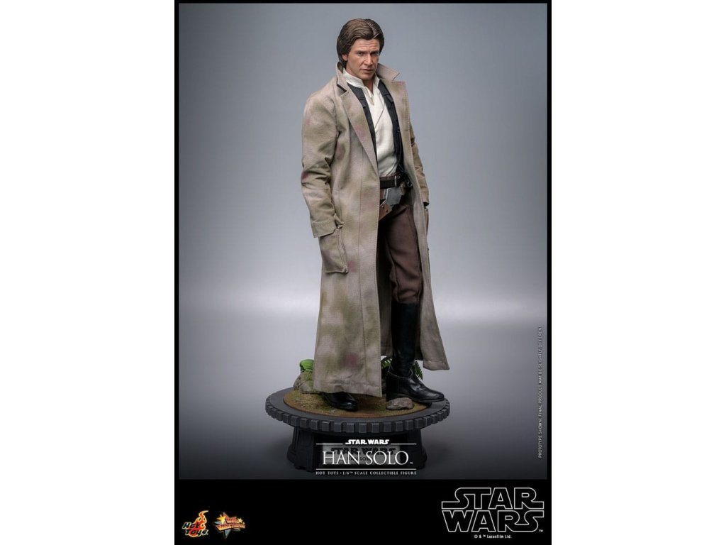 Han Solo vzešel z chudinského dětství na surových ulicích Corellia a stal se jedním z hrdinů Rebel Alliance. Jako kapitán Millennium Falconu přišel Han a jeho co-pilot Chewbacca na chuť myšlence galaktické svobody, když se přidali k Luke Skywalkerovi a princezně Lei Organě v boji proti Impériu. Sideshow a Hot Toys s nadšením představují zcela novou šestou škálovou figurku Hana Sola na základě monumentálního Star Wars: Návrat Jediho! Výsostně přesná sběratelská figurka Hana Sola je dovedně vyrobena podle jeho vzhledu ve filmu. Nese úchvatný hlavový model s velkou podobností a otáčecími očními kuličkami, jemně ušitým oblekem s maskáčovým kabátem, blasterem a základnou figurky ve stylu Endoru! Tato sběratelská figurka Hana Sola v šesté škále bude se dokonale hodit do sbírky jakéhokoli fanouška sběratelských předmětů Star Wars!