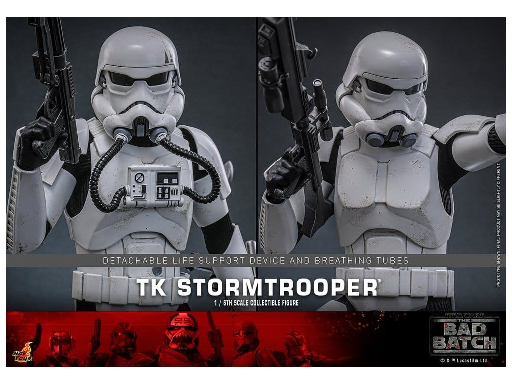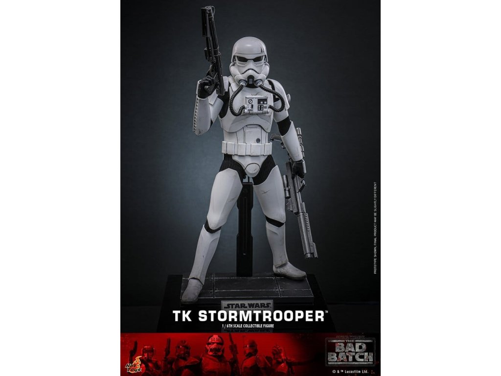 Když Galaktická republika ustupuje Galaktické říši ve Star Wars: The Bad Batch™, objevuje se nová generace vojáků, aby vynutila vůli císaře napříč galaxií. Mezi nejstaršími verzemi jsou TK Stormtrooperové - nováčci vycvičení, aby nahradili upadající armádu klonů. Jejich charakteristický bílý brnění, inspirovaný raným imperiálním designem, představuje zásadní moment v evoluci mohutných sil Impéria. Sideshow a Hot Toys s radostí představují sběratelskou figuru TK Stormtrooper™ v měřítku šestkrát menší než v reálné velikosti. Akční figura obsahuje nově vytvořenou helmu TK Stormtrooper s realistickými stopy opotřebení. Kostým obsahuje nově vyrobenou sadu bílého a opotřebovaného brnění TK Stormtrooper, látkový spodní díl, užitkový pásek a pár bot - vše autenticky znovu vytvořeno, aby zachytilo opotřebenou estetiku rané éry viděnou v The Bad Batch. Zbraně zahrnují karabiny DC-15A a pušku DC-15A s nově vyvinutým zaměřovačem, které ukazují bojové schopnosti vojáka. Šest vyměnitelných rukavicových rukou, včetně uvolněných, držících blástr, ukazujících prstem a otevřených gestikulujících rukou, umožňuje sběratelům rekonstruovat různé akční postoje. Příslušenství jako magneticky připevnitelný termální granát a dýchací přístroj s trubicemi zvyšují autentičnost prezentace. Doplněno je speciálně navrženým stojánkem pro impozantní vystavení. Sběratelé, kteří si předobjednají speciální edici dostupnou pouze na vybraných trzích, obdrží exkluzivní příslušenství, včetně páru brýlí a hnědého obrněného pláště s odnímatelnými rukávy, což nabízí celkem 4 styly zobrazovacích režimů a autentičnost inspirovanou obrazovkou. TK Stormtrooper Star Wars Figure šestkrát menší než skutečná velikost poskytuje věrnou reprezentaci tohoto raného imperiálního vojáka, který překlenuje odkaz válek klonů a vzestup sil stormtrooperů - nezbytnost pro fanoušky The Bad Batch a sběratele Star Wars. Orientační datum vydání: květen 2027