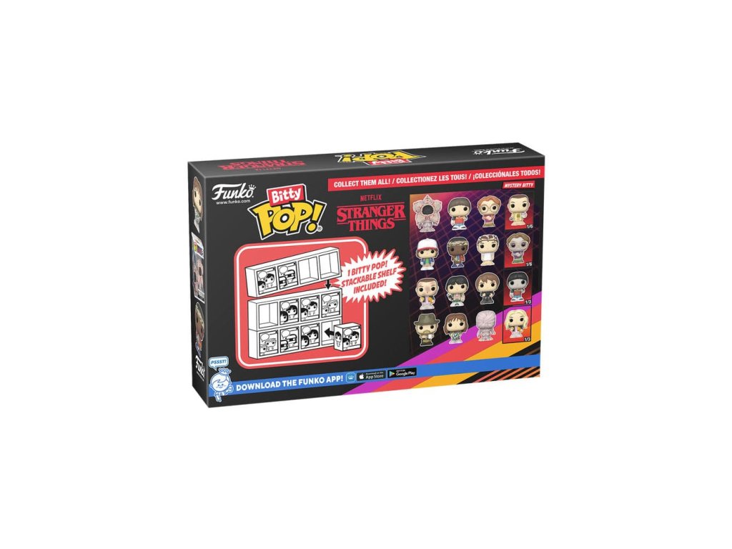 Vaše oblíbené postavičky Pops! byly zmenšeny na Bitty Pops! Rozšiřte si svou sbírku tímto výběrem figurek Bitty Pop! představující vaše nejmilejší postavy z kreslených filmů! Každý 4-balíček obsahuje jednu vzácnou nebo hyper vzácnou tajemnou figurku Bitty Pop! pro doplnění série. Bitty Pops! jsou balené v tvrdých akrylátových obalech s odnímatelnými dnem. Odnímatelné dno slouží jako akrylátová základna, na kterou jsou figurky Bitty Pop! přilepeny.