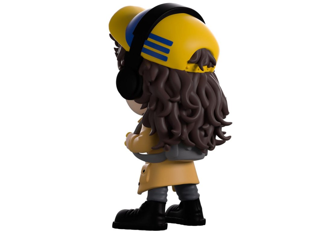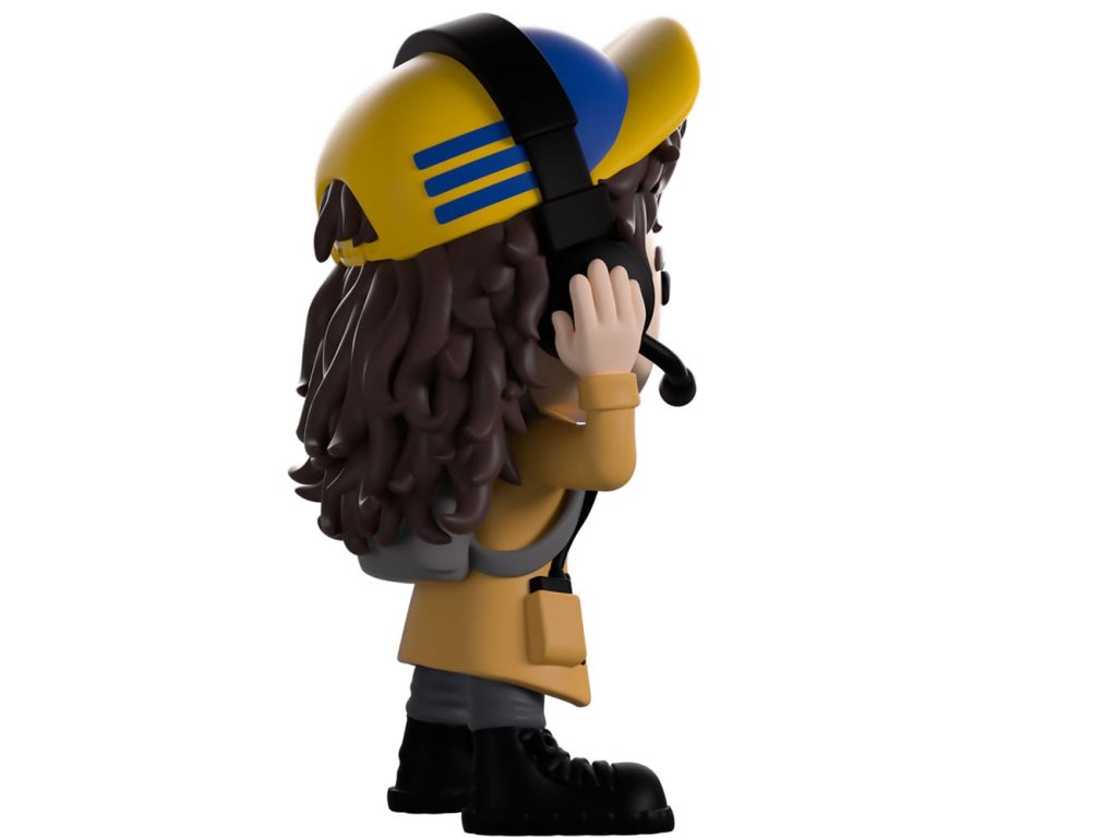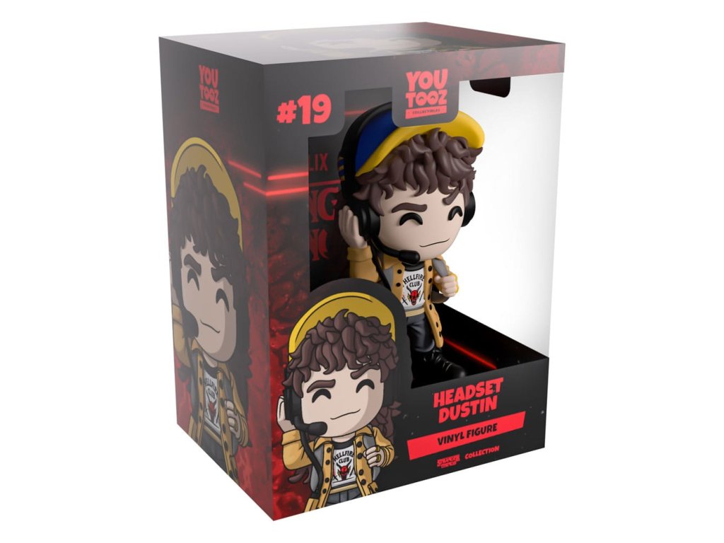 Dustin na případu! Jakém případu? Neptejte se, je to přísně tajné! A rozhodně to nemá nic společného s jeho návratem na Youtooz! Stojí vysoko 5 palců s sebevědomým úšklebkem na tváři, zatímco na svých dlouhých hnědých vlasech se kadeří žlutá a modrá čepice, černé sluchátko pokrývá jeho hlavu s mikrofonem, který překrývá jeho obličej a kabel, který vede dolů do zařízení v kapse. Nosí zlaté prstýnky a světle hnědý kabát přes jeho tričko Hellfire Club, šedý batoh je přehozen přes jeho ramena, zatímco tmavé kalhoty vedou dolů k černým botám. Exteriér jejich balení vidí jeho červený vektor proti černému pozadí s bledými výhonky, které se protáhnou přes ně, zatímco neonově červené čáry vystřelují vodorovně skrz interiér. Tyto se pak přesunou na ochranný obal, kde je vidět jeho figurka skrz velké průhledné okno na přední straně balení. Tato sběratelská položka je dodávána v matném, vyraženém, ochranném vnějším rukávu a v plastovém ochranném krytu na míru pro maximální ochranu během přepravy. O Stranger Things: Stranger Things je americký vědecko-fantastický hororový dramatický televizní seriál, který vytvořili bratři Dufferové a je vysílán na Netflixu. Seriál se odehrává v 80. letech v fiktivním městě Hawkins v Indianě. Série se soustředí na skupinu přátel, jak vyšetřují řadu nadpřirozených událostí, které se dějí po celém městě. Vyvinuli spojení s nepřátelskou alternativní realitou nazvanou „Vzhůru nohama“ a musí najít způsoby, jak z ní uniknout. Orientační datum vydání: červenec 2026