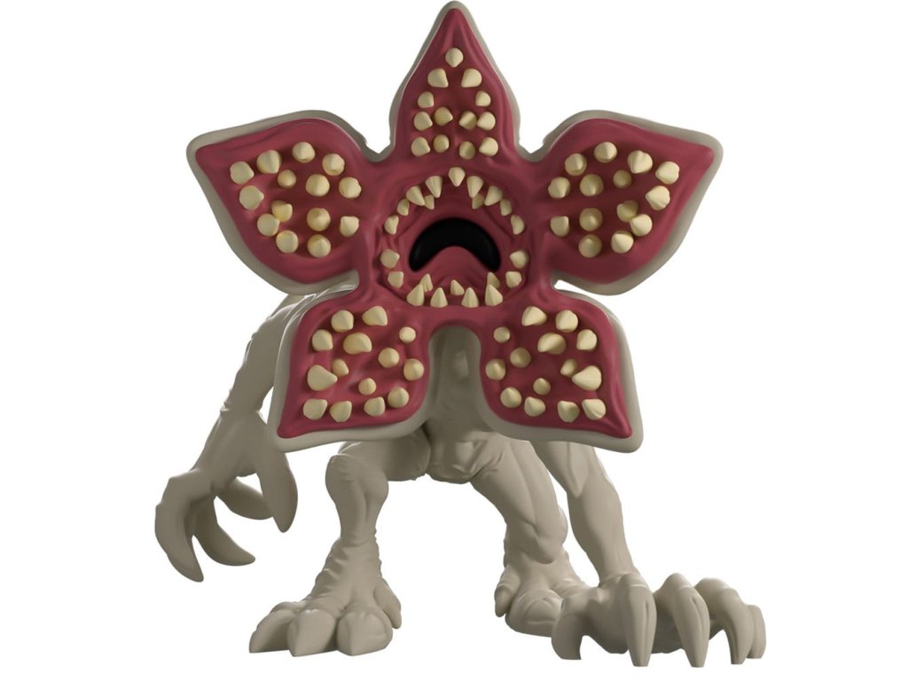 Běžte .... BĚŽTE TEĎ! PŘICHÁZÍ! V předklonu o výšce 3,9 palce připravený na hrůzný útok, jeho masitý rudý obličej se otevírá do květujícího kruhu plného ostrých zubů, zatímco zakřivená černá tlamka se nachází v jeho středu. S ostrohrannými kostmi a výrazným svalstvem napínající pokožku svého vyhublého šedého těla, tenké žíly se kouří z zad jejich hlavy a přes jejich trup až k obrovským pařátům na rukou a nohou. Exteriér jejich obalu zobrazuje červený vektor nich proti černému pozadí s jemnými úponky, které se přes něj plazí, zatímco neonově červené čáry se v interiéru šíří vodorovně. Tyto se pak přesunou na ochranný rukáv, kde lze jejich figurku vidět skrze velké průhledné okno na přední straně obalu. Tento sběratelský předmět je dodáván v matném, reliéfním, ochranném vnějším obalu a v měřítku plastovém chrániči pro maximální ochranu během dopravy. O Stranger Things: Stranger Things je americký vědeckofantastický hororový televizní seriál vytvořený bratry Dufferovými a vysílaný na Netflixu. Show se odehrává v 80. letech ve fiktivním městě Hawkins v Indianě. Série se zaměřuje na skupinu přátel, kteří vyšetřují mnoho nadpřirozených událostí, které se ve městě dějí. Navazují spojení s nepřátelskou alternativní realitou zvanou "Vzhůru nohama" a musí najít způsoby, jak z ní uniknout. Orientační datum vydání: červenec 2026
