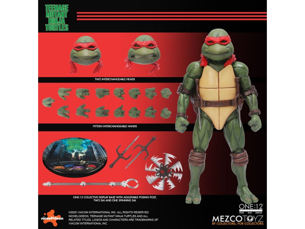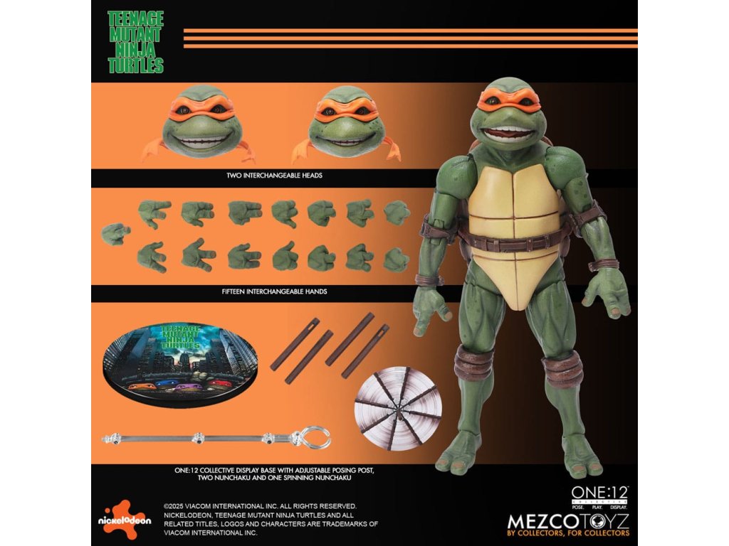 Přímo z blockbusteru a na vaši policu - Želvy Ninja z filmu z roku 1990 se připojí k kolektivu One:12! Leonardo, Raphael, Donatello a Michelangelo, kteří se narodili v tajemné konzervě s mutační tekutinou a byli vyškoleni mistrem Splinterem, vyskakují z filmu v podobě vysoce detailních, filmově přesných figur. Každá želva má jedinečnou hlavovou sošku, pohyblivé tělo One:12 Collective pro expresivní pózování a oddělitelné oči, které reprodukují ikonické výrazy z filmu - od stoických po milovníky pizzy. Každá želva zahrnuje filmově přesný pásek a náramek, tři výměnné portréty hlavy zachycující jejich charakteristické výrazy a obrovský sortiment zbraní a efektů inspirací filmových scén. Tato luxusní boxová sada je ultimátním sbíratelským poctou debutu želv v roce 1990. FUNKCE FIGUREK ŽELVÍCH NINJA MUTANTŮ (FILM 1990) ONE:12 COLLECTIVE: - těla One:12 Collective s více než 26 artikulačními body - Ručně malované autentické detaily - Výška přibližně 149mm-151mm - Oddělitelné oči pro filmově přesné výrazy - Unikátní hlavy sošek pro každou želvu. PORTréTY HLAV: - 3 portréty Leonardovy hlavy (standardní, usmívající se, skřípající zuby) - 3 portréty hlavy Raphaela (standardní, usmívající se, skřípající zuby) - 3 portréty Donatellovy hlavy (standardní, otevřená ústa, skřípající zuby) - 3 portréty hlavy Michelangela (standardní, ušklíbající se, křičící) OBLEČENÍ: - Pásky a postroje z měkkého materiálu se skladištěm pro zbraně - Tkané kolenní a loketní chrániče PŘÍSLUŠENSTVÍ: - 2 katanas s pochvami - 2 sai - 1 bo staff - 2 nunchaku s gumičkou - 1 točící se sai FX - 2 točící se nunchaku FX - Mnoho výměnných rukou na figurkách (pěsti, držení zbraní, palec nahoru, ukazování, relaxed, pózování) BALENÍ: Sada Teenage Mutant Ninja Turtles One:12 Collective (Film 1990) Deluxe Box Set je balena v boxu přívětivém pro sběratele, navrženém se sběrateli na paměti. Orientační datum vydání: listopad 2026