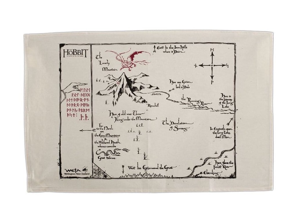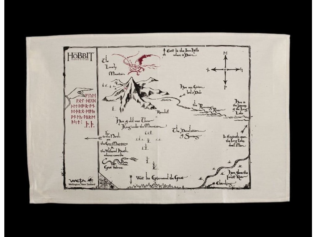 Od New Line Cinema, Petera Jacksona a Warner Bros. přichází J.R.R. Tolkienův Hobit, převedený na velkou obrazovku v epické trilogii. Weta Workshop byla nadšena, že se mohla opět vrátit do Středozemě a přispět designem, speciálními rekvizitami a speciálními kostýmy do všech tří filmů. Každé velké dobrodružství potřebuje pokladovou mapu a v Hobitovi: Neočekávaná cesta byla mapa vytvořena Throrem, dědečkem Thorina Dubáka. Mapa obsahuje nejen zobrazení terénu, ale také podrobné instrukce. Některé jasné jako den, některé skryté. - Tento čajový ubrus je vyroben z 100% bavlny. - Velikost: 19,68 " x 28,34 " x 0,07 " (Š x V x H) 50 cm x 72 cm x 0,2 cm