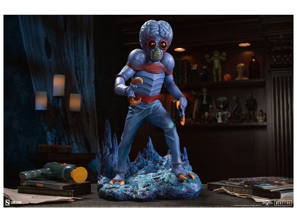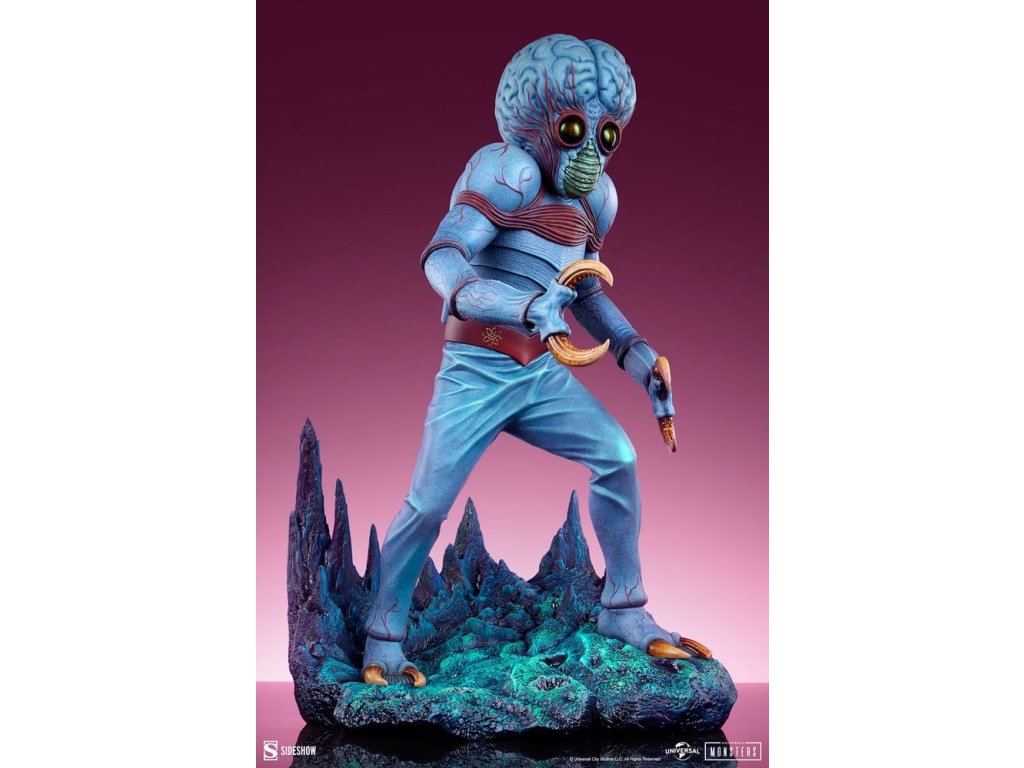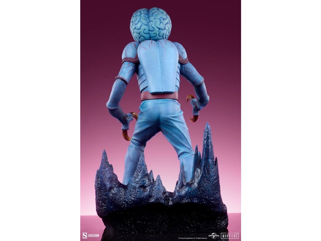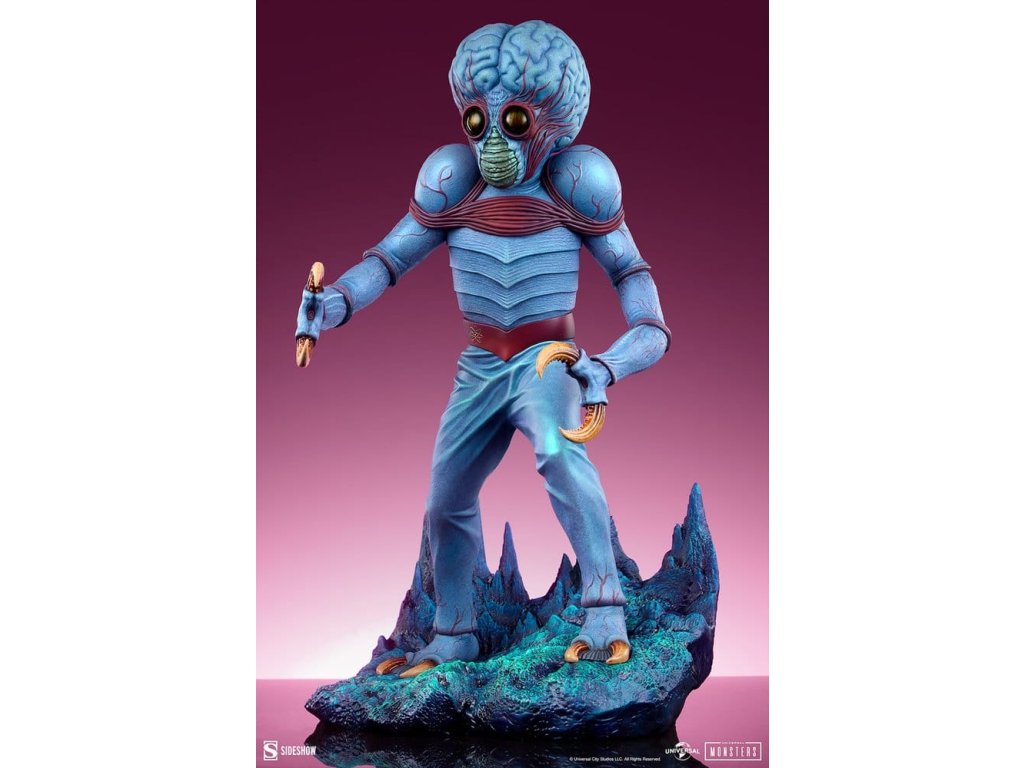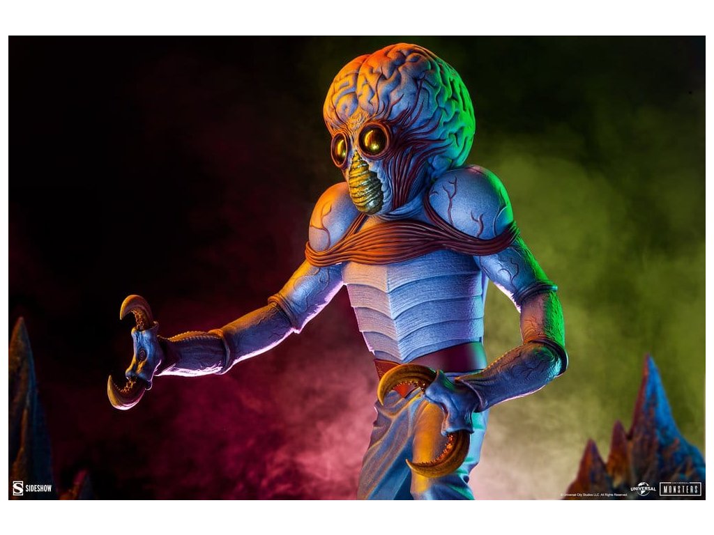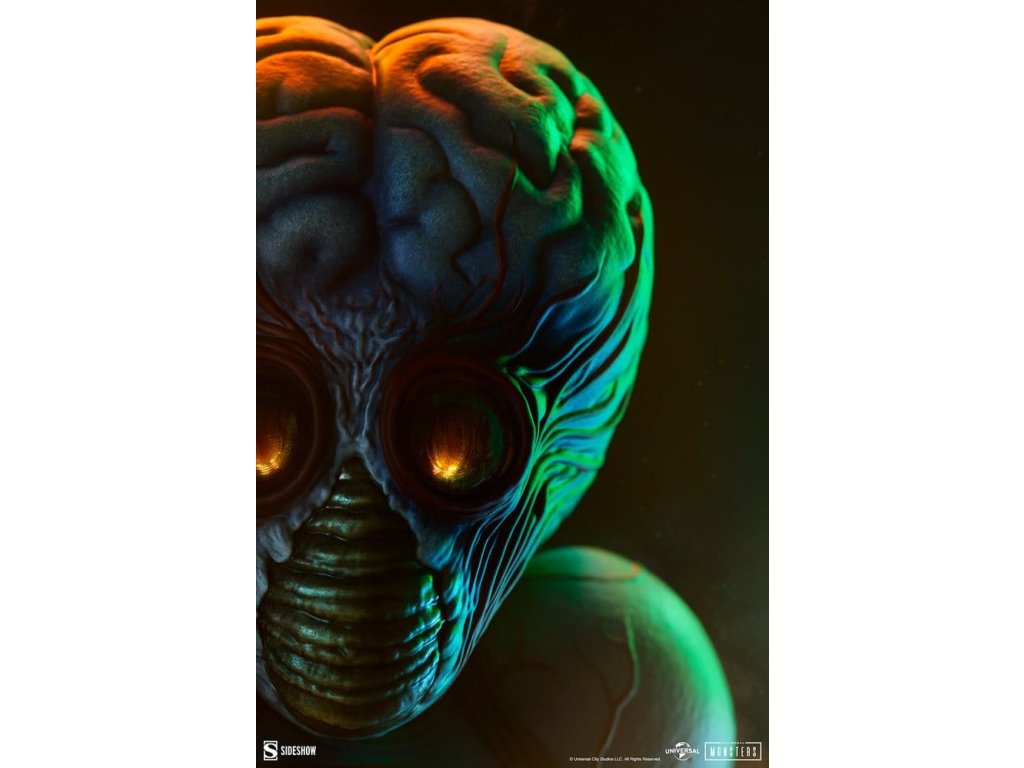 Sideshow představuje Metaluna Mutant v prémiovém velkoformátovém provedení, oficiálně licencovaný sběratelský kus z kolekce Univerzální monstra. Tato okouzlující, plně vysoce kvalitní socha je technicolorovým tributem pro nedoceněné, ale nikoli zapomenuté, filmové monstro, které debutovalo v 50. letech. Po téměř třech desetiletích se Sideshow vrací k tajemstvím vesmíru s Metaluna Mutant! I přes to, že tento charakter byl dříve viděn ve formátech menších sběratelských kusů, tato nová verze ve čtvrtinové velikosti nesmazatelné ikony popkultury přináší její unikátní design do života v prvotřídní prezentaci. Metaluna Mutant v prémiovém velkoformátovém provedení měří 55,88 cm na výšku, 33,02 cm na šířku a 43,18 cm na hloubku a je ultimátní reprezentací tohoto úchvatného stvoření, které šokovalo diváky po celé Americe. Jeho hmyzí vzhled a krustácea klapky evokují nostalgie na retro filmové masky monstr, zatímco mozoly a obří hlava tvoří kvintesenciální siluetu pro tento žánr. Od své psychedelické červeně-modré barevné palety až po jeho mimozemskou fyziologii najdou fanoušci, že ve věrném ztvárnění této ikony science fiction nebyl opomenut žádný detail. Velká a životná, Metaluna Mutant v prémiovém velkoformátovém provedení stojí na drsné vyhlídce živého povrchu nějaké planety. Inspirace estetikou atomového věku, jeho podivné hmyzí oči, zvrásněná kůže a vrstvená ústa naznačují podivnou, ionizovanou atmosféru, ve které žije. Může se zdát odjinud svéta, ale hrůza a nebezpečí číhají blízko domova! Nechte Metaluna Mutant v prémiovém velkoformátovém provedení od Sideshow napadnout vaši polici už dnes! Rozměry produktu: 55,9 x 33 x 43,2 cm. Orientační datum vydání: leden 2027