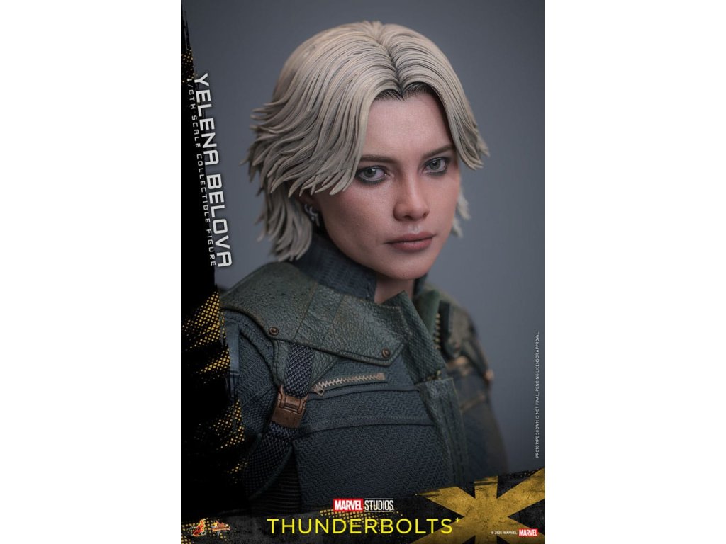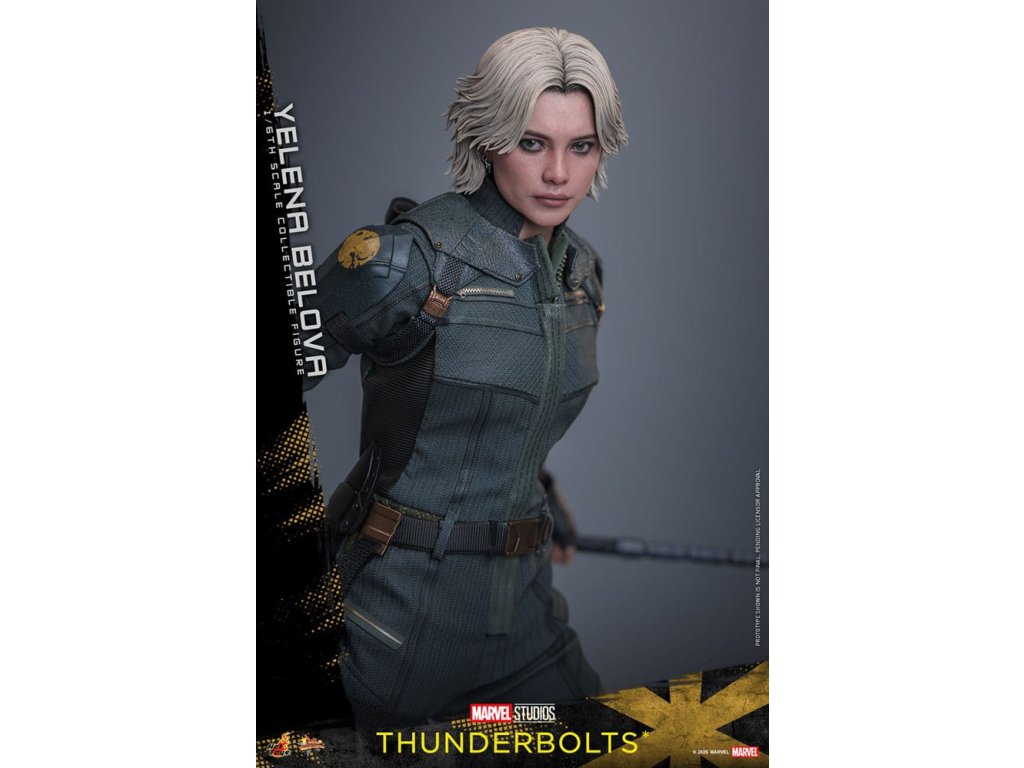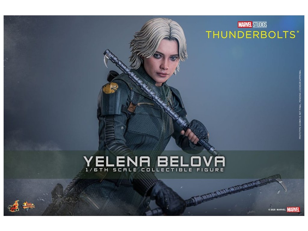 "Sami ho nezastavíme. Nikdo to nedokáže. Ale můžeme to zvládnout společně." - Jelena BělovaV Marvelových studiích Bleskovky*, Jelena Bělova vstupuje do popředí, kde plně využívá svou roli silné operativky s komplikovanou minulostí. Cesta Jeleny od vyškolené vražedkyně z Rudé komnaty k vůdci týmu Bleskovky* (Noví Avengři) ukazuje její odolnost a hloubku. Její postava se vyvíjí skrze zranitelnost, sílu a snahu o odpuštění, což z ní dělá výraznou postavu v Marvelovém filmovém vesmíru.Hot Toys je hrdý na to, že představuje sběratelskou postavičku Jeleny Bělové v měřítku šestina, první členku naší řady Bleskovky*. Tato akční postavička má nově vyvinutou hlavu s přesným filmovým výrazem, detailním make-upem a oddělenými očními bulvami. Její blond vlasy jsou přesně vypracované, zachycující podobu postavy na obrazovce. Bojový kostým Jeleny je znovu vytvořen s mimořádnou pozorností k detailům, s jednodílným taktickým oblekem s ručně šitými detaily, doplněným o ramenní brnění a typický Black Widow's Bite rukáv na obou zápěstích. Její vybavení je stejně smrtící, jako je ikonické, včetně krátkých obušků a dlouhých obušků s připojitelnými kosovými čepelemi, spolu s pistolí a bojovým nožem pro blízké souboje. S devíti vyměnitelnými rukama pro různé pózy, od uvolněných postojů po gesta připravená k akci a typické superhrdinské přistávací pózy, tato novinka nabízí neuvěřitelnou flexibilitu zobrazení pro dynamické a výrazné pózy.Sestavte Nové Avengry s touto pečlivě vytvořenou sběratelskou postavičkou Jeleny Bělové v měřítku šestina.
