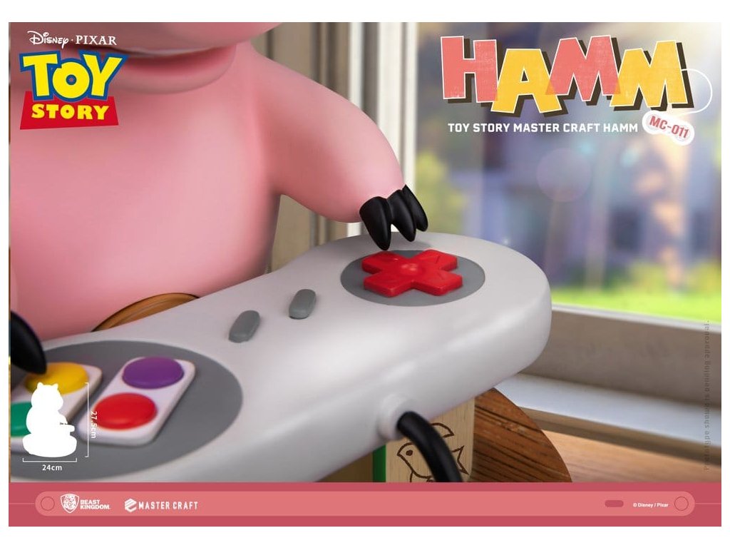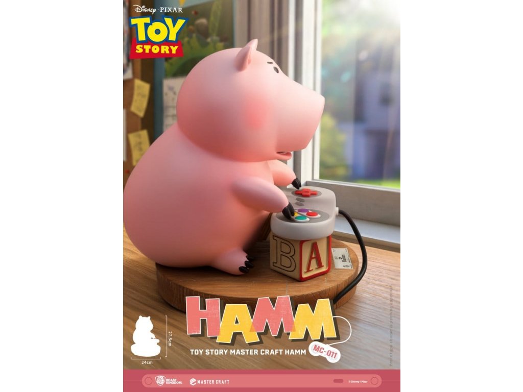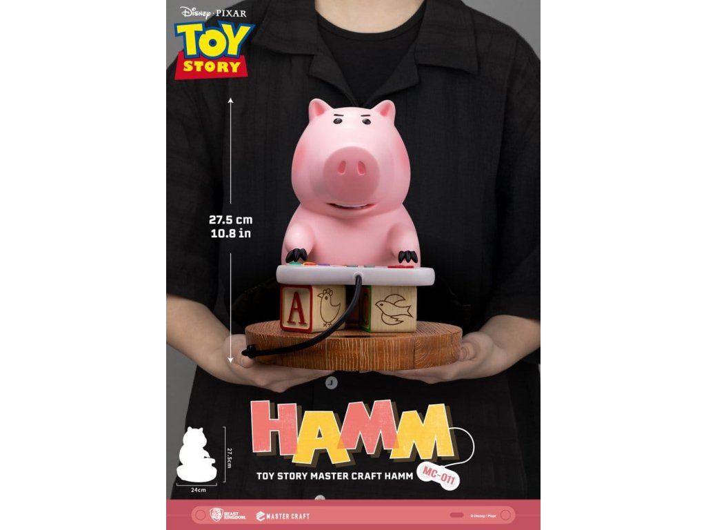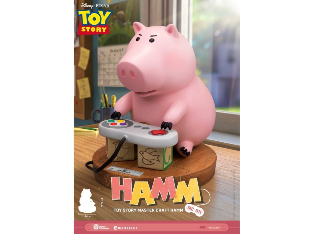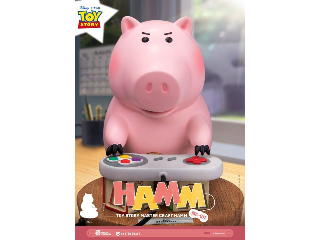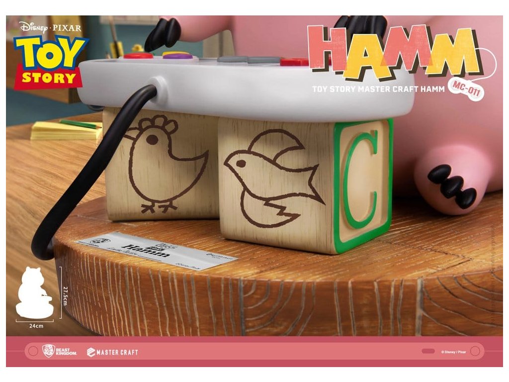 V klasické animované sérii společnosti Disney/Pixar: Toy Story, mezi všemi postavami od Woodyho po Buzz Lightyeara, se Hamm vynořuje s některými z nejšílenějších a nejvýstřednějších dobrodružství všech! Tchajwanský Beast Kingdom vás vrací k jednomu z nejvtipnějších momentů Toy Story 2, kdy Hamm používá sadu dětských kostiček jako improvizovaný stojan pro herní ovladač. Roztomilý a roztomilý okamžik, kdy Hamm ukazuje svou vynalézavost před skokem do vážné herní akce! Mastercraft, MC-011 Toy Story Craft Hamm ukazuje enormní pozornost Beast Kingdom k detailům. Série velmi kvalitních sošek umožňuje fanouškům vzít si domů to nejlepší z vysoce hodnotných sběratelství. Plně ručně malovaný s přesnými detaily, každá část od Hamma samotného po ovladač nebo dřevěné kostičky neměla žádné detaily vynechané! Takže všichni fanoušci Toy Story, jste připraveni vyzvat Hamma k hře? Určitě si sežeňte svůj vlastní Hamm Mastercraft a už dnes si odneste kouzlo domů!Velikost výrobku: 28 x 24 x 29 cm. Orientační datum vydání: červen 2026