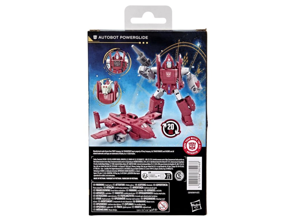 Prožijte epický vesmír robotů Transformers s hračkou Transformers Age of the Primes Autobot Powerglide! Figurka Deluxe třídy o velikosti 4,5 palce (11 cm) se mění z akční figurky robota na hračku v podobě letounu v 20 krocích. S detailně propracovanou pózovatelností a připojitelnými doplňky jako je blaster a mimozemská maska, se stane akční figurka Autobot Powerglide skvělým doplňkem jakékoliv sbírky. Hledejte další sběratelské hračky Transformers (prodávají se zvlášť, podléhají dostupnosti) s postavami jako jsou Smokescreen, Cliffjumper, Autobot Ratchet a další, abyste vytvořili sestavu, která je - Více než se na první pohled zdá.