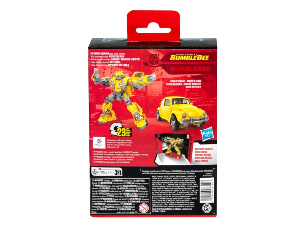 Přeneste epickou akci z filmů Transformers z velké plátno do své sbírky s akční figurkou Transformers Studio Series Deluxe Class Bumblebee, inspirovanou Transformers: Bumblebee! Hračky Transformers Studio Series jsou sběratelské akční figurky, které se vyznačují detaily a příslušenstvím inspirovanými filmem. Přeměňte akční figurku Transformers Studio Series z robotického na režim automobilu Volkswagen Beetle v 23 krocích a postavte hračku Bumblebee do přiložené odnímatelné scény Charlieho garáže. Hledejte další sběratelské figurky Transformers Studio Series pro vytvoření filmové sbírky (každá prodávána zvlášť, dle dostupnosti)!