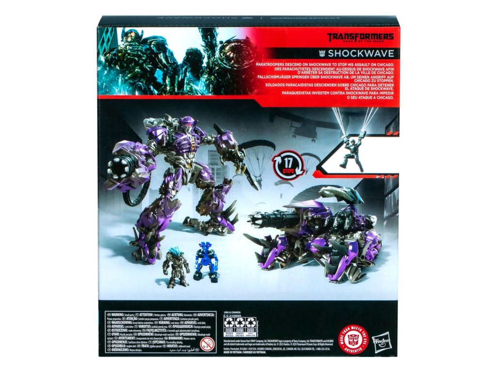Přeneste epickou akci z filmů Transformers z velkého plátna do vaší sbírky s akční figurkou Shockwave třídy Leader Serie od Transformers, inspirovanou filmem Transformers: Temná strana měsíce! Hračky Transformers Studio Series jsou sběratelské akční figurky, které obsahují detaily a doplňky inspirované filmy. Figurka se mění z robotického na kanónový režim v 17 krocích a nabízí artikulovanou hlavu, ruce a nohy pro úžasné akční pózy. Je součástí balení 3 figurky a 1 doplněk. Hledejte další sběratelské figurky Transformers Studio Series a vybudujte sbírku inspirovanou filmem (každá se prodává samostatně, podléhá dostupnosti)!