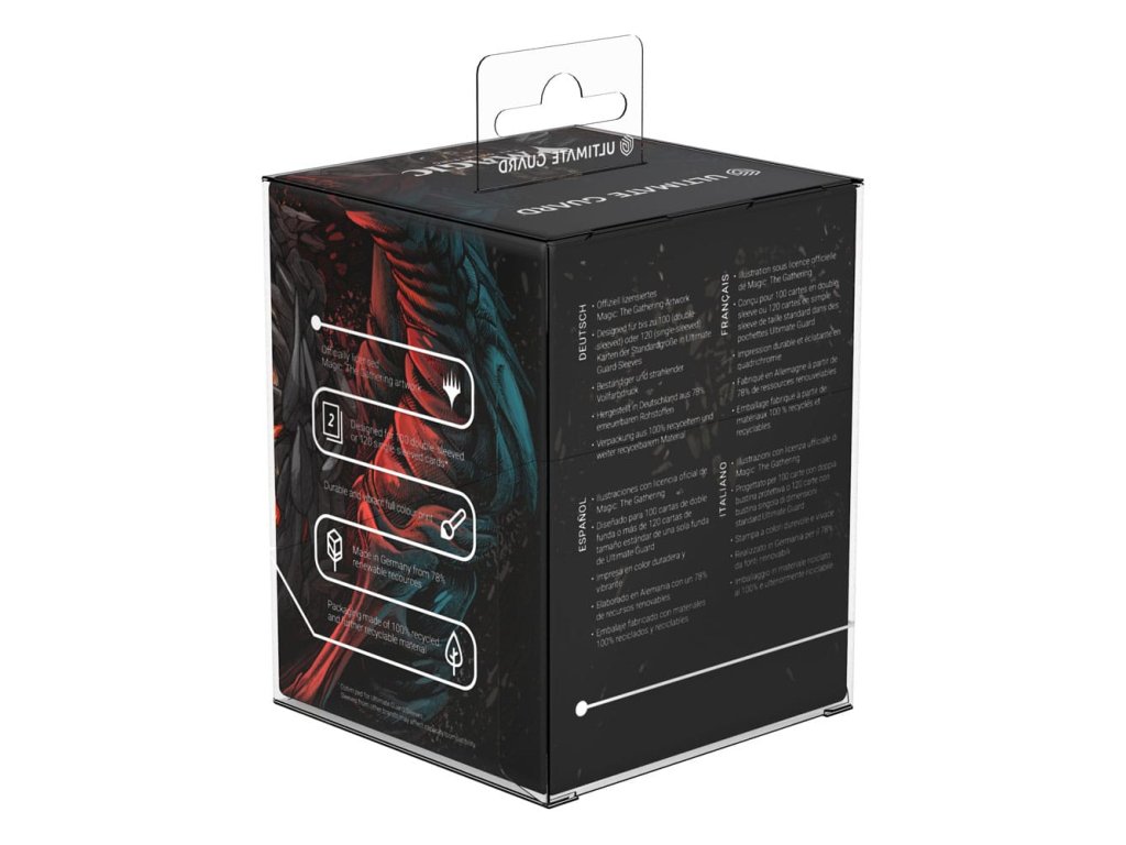 - Navrženo pro 100 dvojitě fóliovaných nebo 120 jednoduše fóliovaných standardních karet v obalech Ultimate Guard