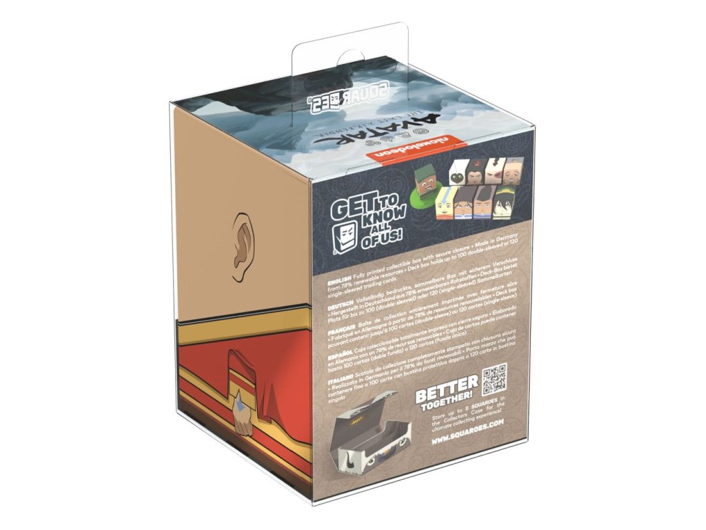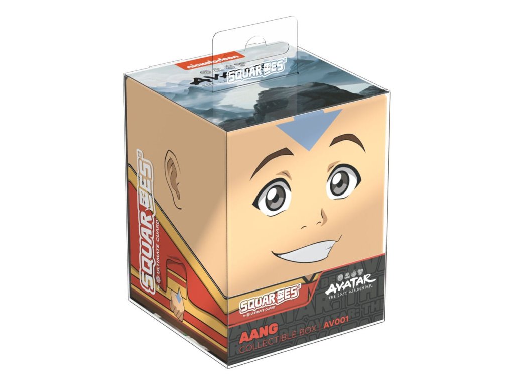 Sběratelská krabička pro ukládání TCG balíčků, příslušenství ke stolním hrám a/nebo sběratelských předmětů. Squaroe Avatar Aang z edice Avatar: Poslední vládce vzduchu pojme až 100 karet v dvojitých ochranných obalech, pokud se používá jako krabička na balíček. Squaroe jsou vyrobeny z 78 % obnovitelných zdrojů a perfektně pasují do samostatně dostupného Collectors Case.