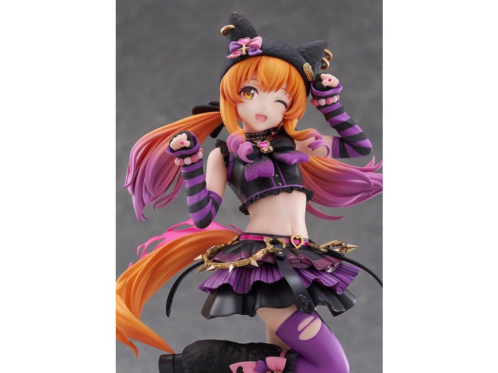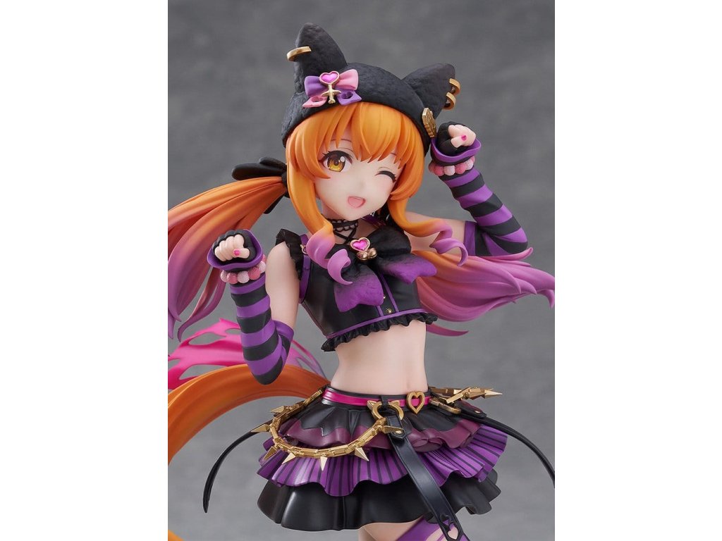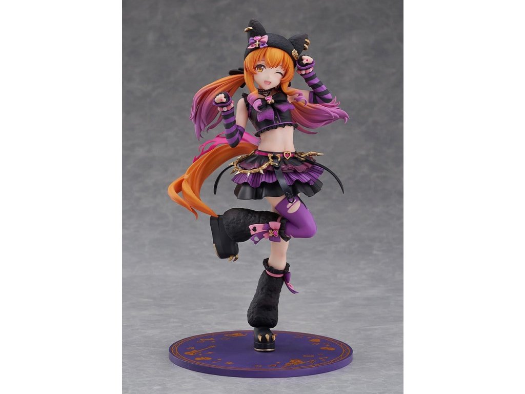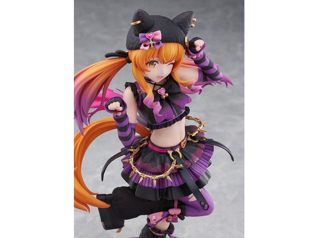 Černá kočka Maya vyráží v roztomilé póze na základě své vítězného postoje! Její dokonale provedené mrknutí plně vyjadřuje její milou okouzlující charakteristiku. Klobouk a návleky na nohy mají chlupatou texturu pro teplý, útulný výsledek. Sytě růžový bederní šátek, zlaté řetízky a náušnice klobouku dodávají akcenty, vytvářejí punkový vibe. Nafouklá sukně se pyšní velkým objemem, přičemž každé patro má jiný design, který upoutává pozornost. Roztomilé ikony inspirované kočkou jsou rozesety po celém - na jejím pasu, podrážkách bot, vlasových doplňcích - což ji dělá zábavnou k prohlížení i zezadu. Její měkce vykasané dvojčata se sklonem nabízejí nový pohled na její obvyklý styl. Zažijte roztomilou Mayano Top Gun v "ROCK" přímo ve svých rukou! Orientační datum vydání: leden 2027