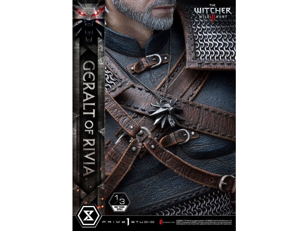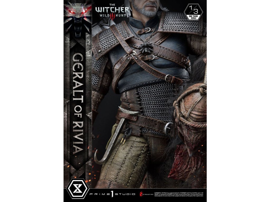 „Vítejte v Divokém honu!“ Prime 1 Studio s hrdostí představuje nejnovější přírůstek do série Museum Masterline. Je to 1/3 měřítko MMW3-01: Geralt z Rivia z epické akční dobrodružné RPG hry: The Witcher 3: Wild Hunt.Tato socha v měřítku 1/3 představuje hlavního protagonistu Hry roku 2015, Geralta z Rivie. Geralt je jeden z posledních zaklínačů a je mistrem mečů. Jako syn čarodějnice vlastní také silné kouzelné schopnosti. Ve hře Witcher 3: Wild Hunt hledá Geralt jeho jediného příbuzného Ciri a musí čelit různým protivníkům a výzvám.Bílý vlk stojí výrazné museum stylu póze vysoké 35 palců. V levé ruce drží svou nejnovější oběť: Tři nešťastné harpyje, které se odvážily vyzvat Gwynbleidd. V pravé ruce drží svůj stříbrný meč, připravený na Divoký hon. Má na sobě ikonický Kaer Morhen brnění z video hry. Jeho portrét byl vyřezán s nejvyšším důrazem na detail, což činí tuto sochu nejpřesnějším zpodobněním Geralta na trhu!Bílý vlk je umístěn na základně s mnoha prvky z videohry. Střed zobrazuje odvážného vlka na základě vlčího medailonu s LED svítící funkcí. Jedná se o první sochu Geralta v měřítku 1/3 a toto měřítko dokonale vyjadřuje auru a silnou přítomnost, kterou Geralt má. Velmi tvrdě jsme pracovali na sloučení prvků z videohry spolu s naším pokročilým 3D modelováním a designem, abychom vám přinesli nejlepší sochu Geralta z Rivie vůbec. Absolutní senzace a nutnost pro všechny fanoušky Zaklínače! Vlastnosti:- Velikost: 88,5 x 55,7 x 57 cm- Jedna (1) zaklínač 3: Divoký hon navržený tématický podstavec- LED osvětlení na podstavci Vzhledem ke velikosti tohoto předmětu se mohou uplatnit dodatečné náklady na dopravu. Kromě vaší polohy je pro výpočet těchto nákladů třeba zjistit aktuální rozměry a hmotnost balíku. Oba údaje v tuto chvíli neznáme a mohou být k dispozici až po příjezdu produktu do našeho skladu.Doplňkové parametry