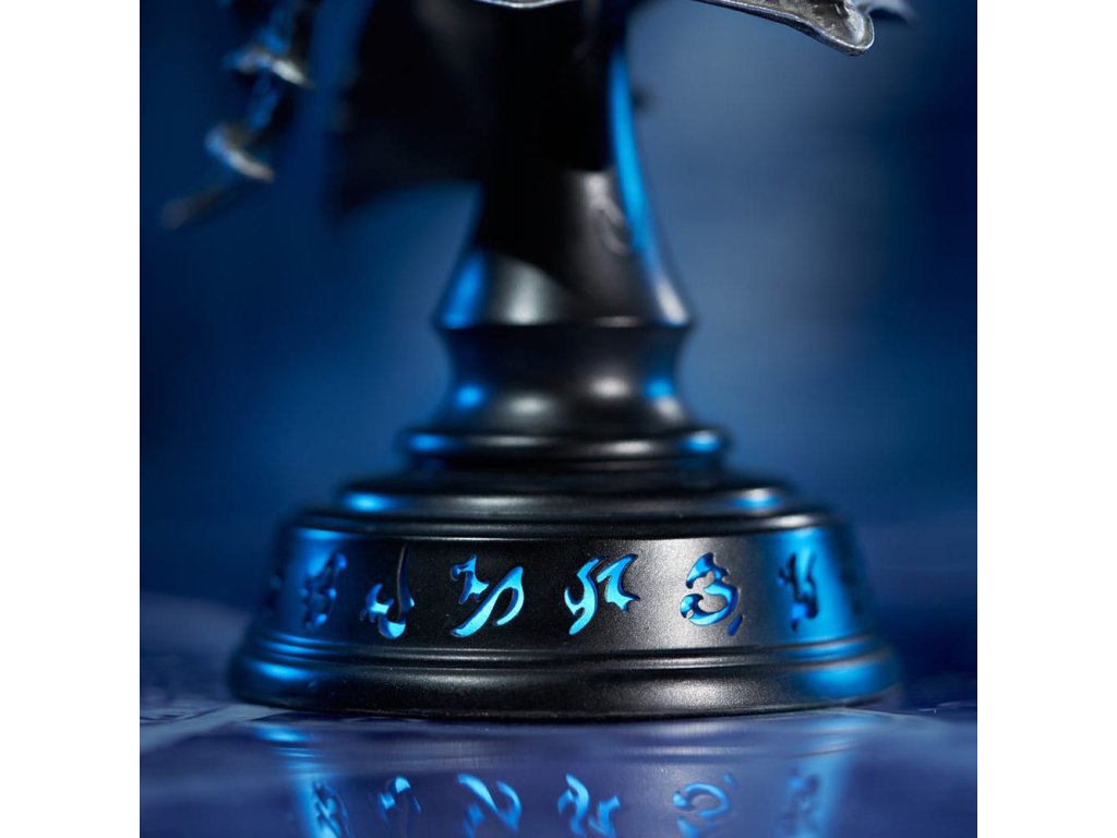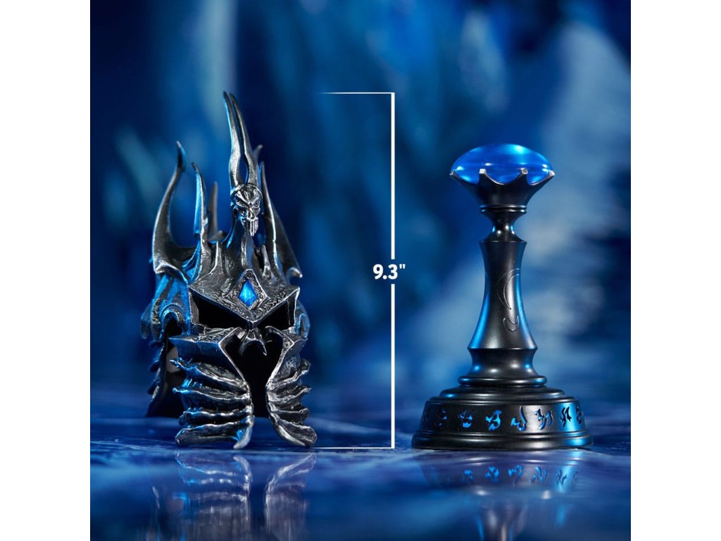 V novém měřítku přetvořená, se legendární Přilba Dominace vrací jako ohromující stolní sběratelský předmět, který zachycuje děsivou majestátnost Lich Krále. Na rozdíl od verze z pryskyřice vydané k 30. výročí je tato nová sběratelská replika vyrobena ze zinkové slitiny, věrně rekreující chladný, detailně propracovaný kovový lesk, jak je vidět v cinelmatografickém traileru k Hněvu Lich Krále. V koruně je zasazený průsvitný PU kámen a ostré ozdoby vystupující z boků vyzařují děsivou auru, která dokládá absolutní dominance Lich Krále. Sběratelský předmět je dodáván s LED zobrazovací základnou, která osvětluje s runami, přivádí k životu sílu mrazu a vytváří pohlcující herní atmosféru na vašem stole. Nenechte si ujít šanci přidat tuto repliku Přilby Dominance (sběratelské edice) do vaší sbírky Warcraftu dnes! Velikost: 23,8 x 9 x 11,5 cm. Pouze helma: 17 x 7,5 x 11,5 cm. Pouze podstavec: 15 x 9 x 9 cm.