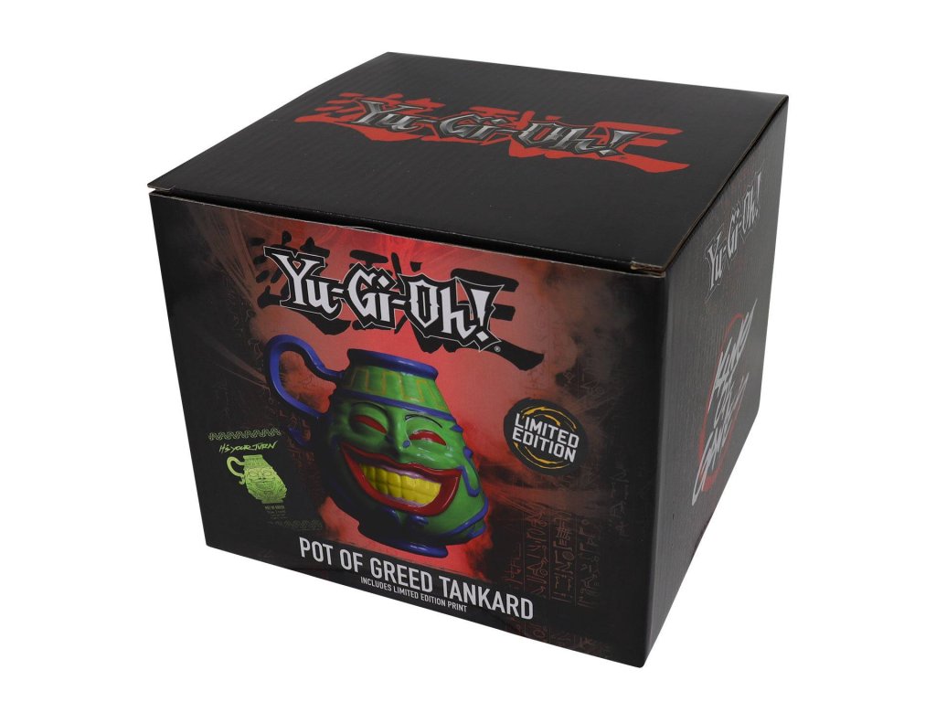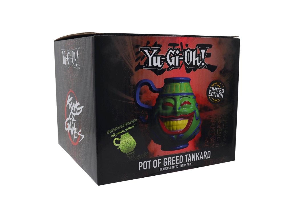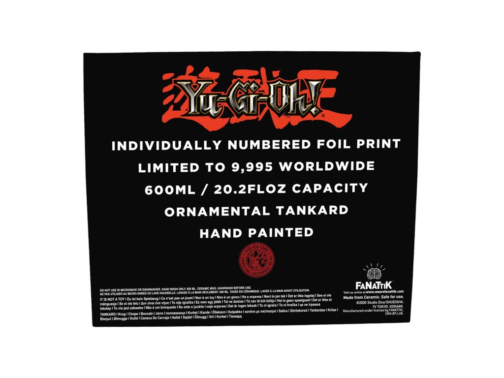 Tento keramický, ručně malovaný korbel Yu-Gi-Oh! je celosvětově limitován na pouhých 9 995 kusů a je dodáván s exkluzivním potiskem ze zelené fólie, který je individuálně číslován.