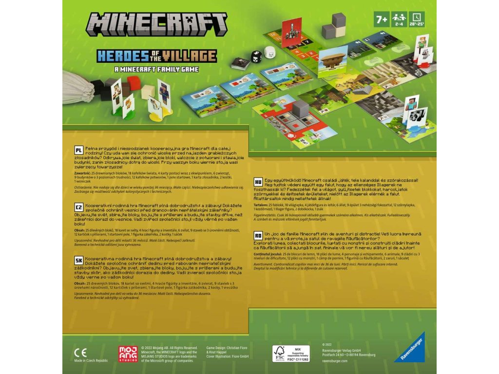Nová kooperativní desková hra pro celou rodinu na motivy světoznámého videoherního fenoménu "Minecraft"! Obyvatelé vesnice potřebují vaši pomoc, aby se ubránili před nepřátelskými "Illagery". Společnými silami se snažte zabránit nájezdu dřív, než se "Illagers" dostanou do vesnice. Prozkoumávejte svět, sbírejte bloky, bojujte s příšerami a stavte budovy. Vaši zvířecí společníci vám budou věrně stát po boku! Můžete se stát hrdiny vesnice?