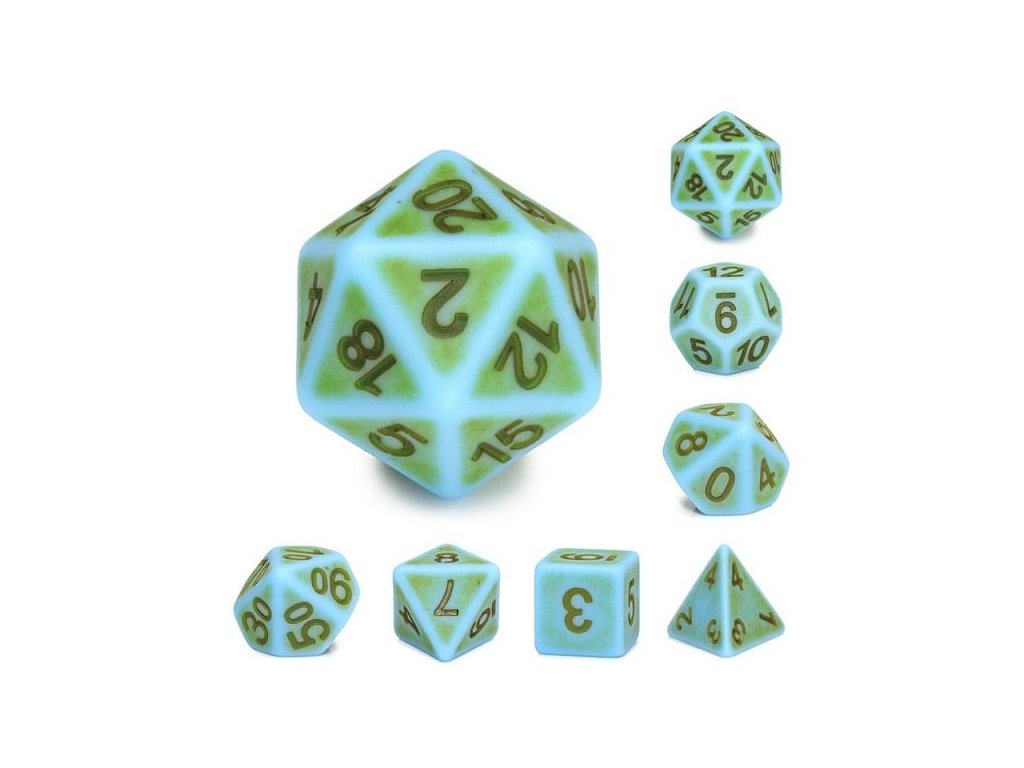 Orginální sada čítající sedm různostranných kostek (k4, k6, k8, k10, k12, k20 a k%) v barvách prastarého mechového podrostu starobylého lesa entů.Diskuze