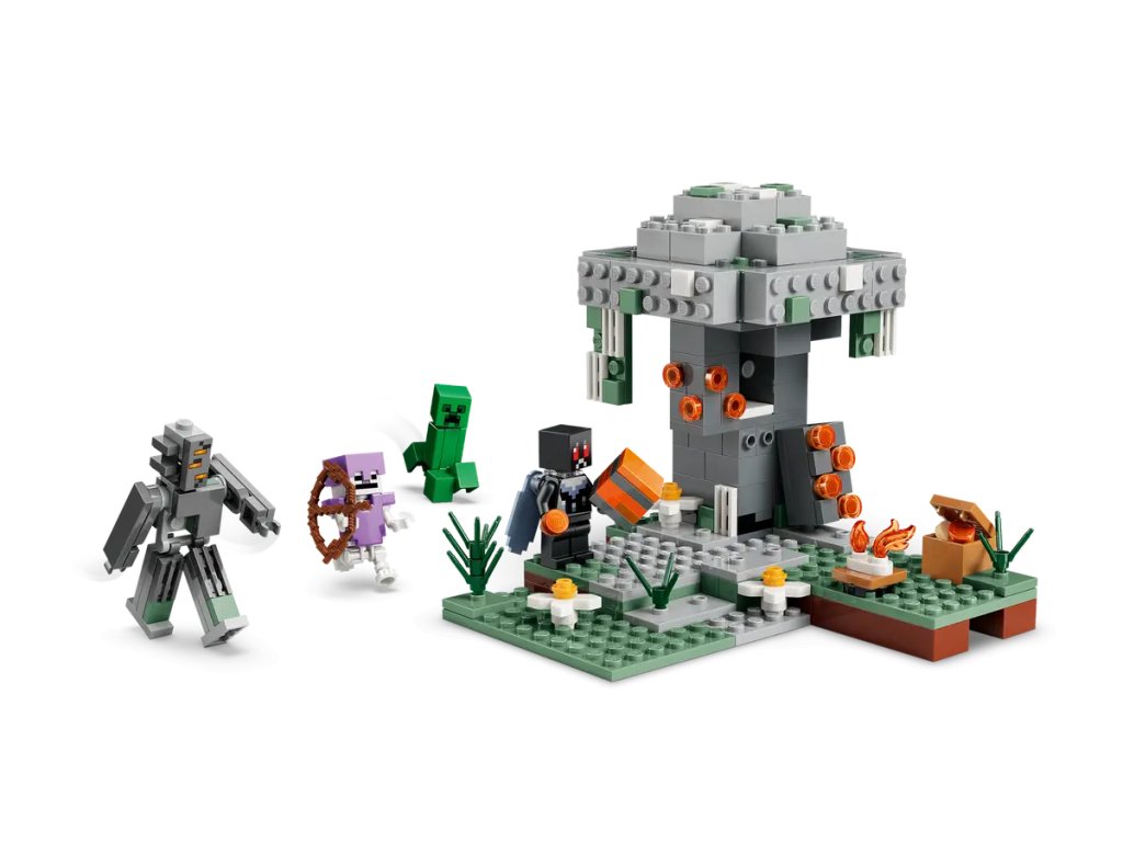 - 4 POSTAVY LEGO® MINECRAFT® – Creaking z kostek se postaví hrdinnému okřídlenému Mothmanovi a Creeper™ a Kostlivec se potulují po bledé zahradě