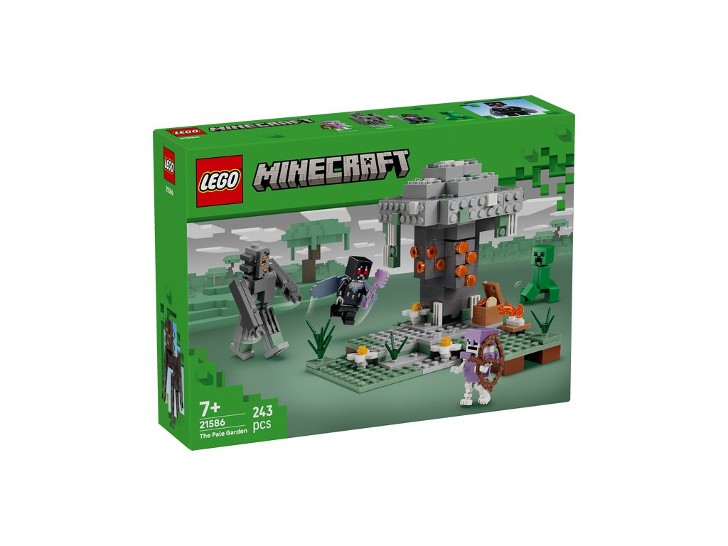 Se stavebnicí LEGO® Minecraft® (21586) Bledá zahrada pro holky a kluky od 7 let hráči vstoupí do jednoho z nejpodivnějších a nejúžasnějších biomů hry Minecraft®. Figurka Creakinga z kostek LEGO se postaví hrdinnému okřídlenému mothmanovi zatímco Creeper™ a Kostlivec se potulují po bledé zahradě. Bledý dub je pokrytý mechem a květy a obsahuje vzácnou pryskyřici a vzácné srdce, které děti můžou získat buď odstraněním kůry, nebo stisknutím tlačítka na zadní straně stromu, které srdce vysune. Minifigurka Mothmana má krovková křídla a drží kouzelnou sekeru a minifigurka Kostlivce má diamantovou zbroj a luk. Mezi další doplňky, které podněcují fantazii, patří truhla, hrudky pryskyřice, táborák a vepřová kotleta. Stavebnice je kompatibilní s aplikací LEGO Builder, která dětem umožňuje přibližovat a otáčet modely ve 3D a sledovat postup stavění pomocí srozumitelných digitálních návodů. Stavebnice obsahuje 243 dílků.