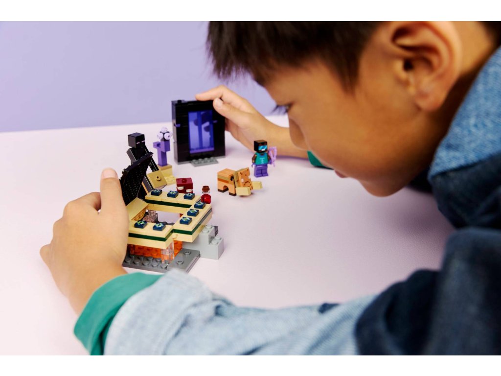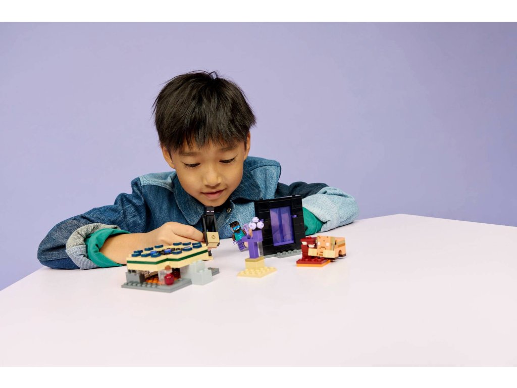 - MODEL PORTÁLU ZE SVĚTA MINECRAFTU – Vydejte se na videoherní dobrodružství se stavebnicí LEGO® Minecraft® (21584) Cesta portálem do Netheru a Endu pro holky a kluky od 7 let
