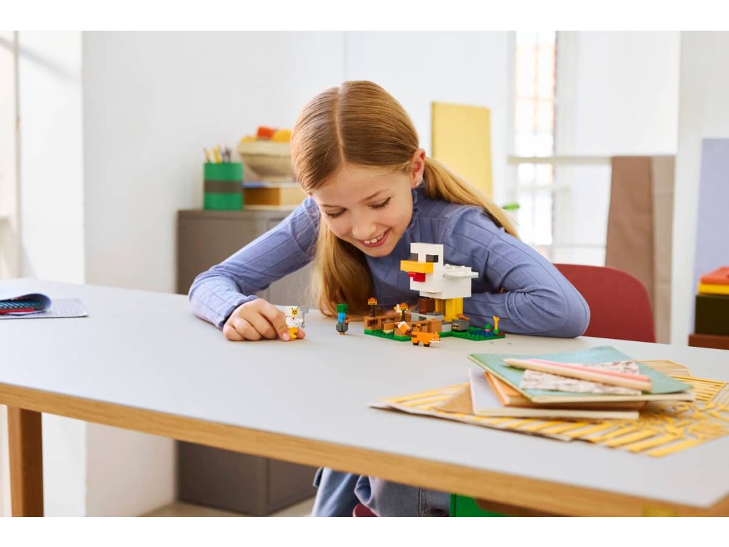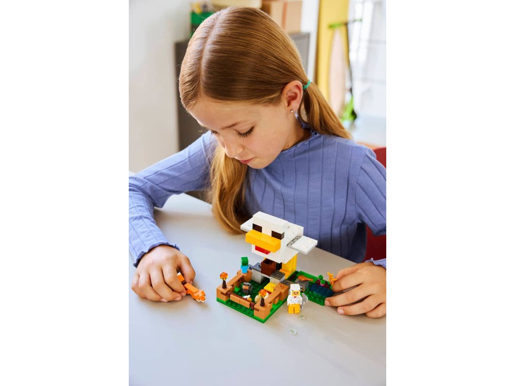 - STAVEBNICE NA MOTIVY VIDEOHRY – Užijte si s touto stavebnicí LEGO® Minecraft® hodiny hraní na péči o slepice, prozkoumejte řadu zábavných funkcí v kurníku a braňte se před malým zombie, které se snaží svézt na kuřeti
