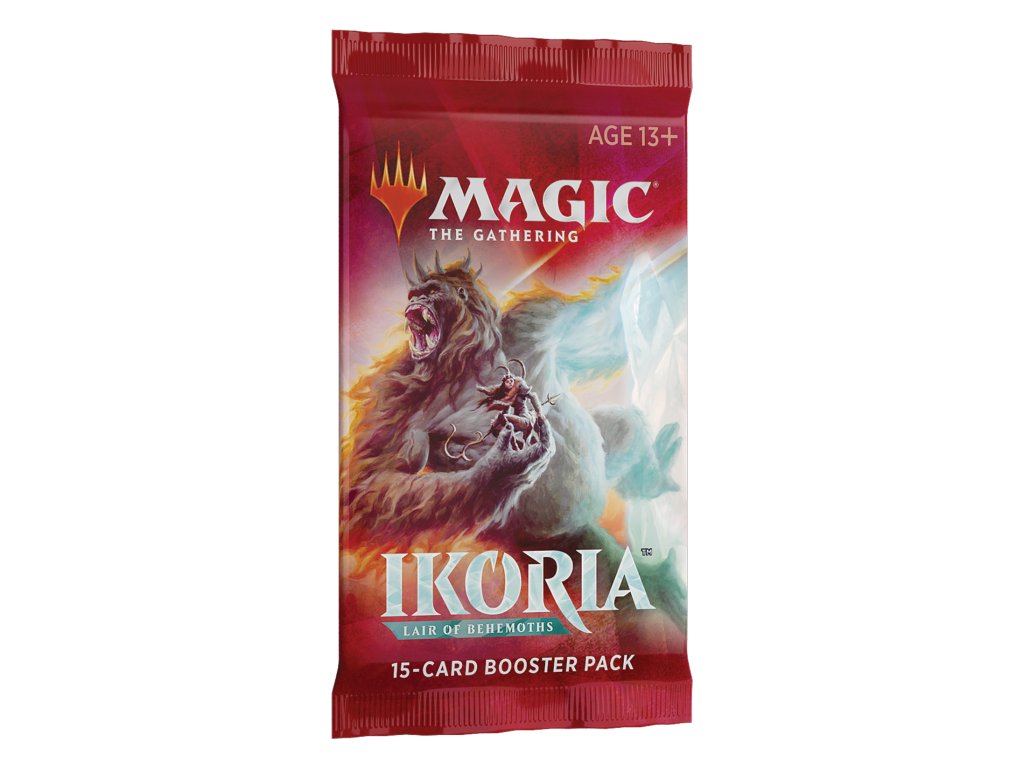 15-ti karetní booster sady Ikoria: Lair of the Behemoths, obsahující vždy 10 common, 3 uncommon 1 rare, nebo mythic rare kartu. Poslední kartou v boosteru je buď Basic Land, nebo tzv. "gainland". Místo jedné common karty se v boosteru může vyskytovat foilová karta náhodné rarity.