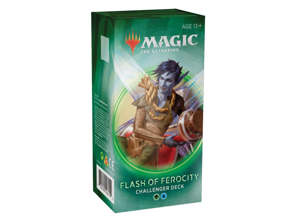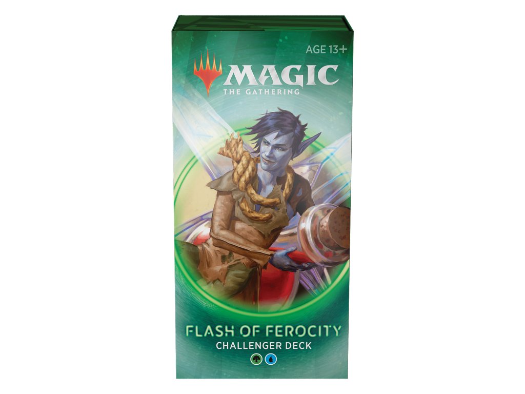 Flash of Ferocity je adaptace nepříjemného balíčku, který s velkou oblibou trestá kontrolní balíčky všech typů. Soupeři hrající kontrolní balíčky velmi rádi čekají na tvé kolo, jenže v momentě, kdy zjistí, že nejlépe se ti hraje v jejich vlastním, úsměvy se velmi rychle mění v pekelné soustředění. Karty jako Nightpack Ambusher, Wildborn Preserver, nebo dokonce kopie Brazen Borrower - jedné z nejdražších aktuálních Mythic karet na formátu Standard - tím vším budeš ve hře vyrukovat, zvolíš-li právě Flash of Ferocity. Soupeři do tebe nebudou chtít útočit, protože vždy můžeš vyvolat velkou bytost do bloku, či posílit svého Wildborn Preservera trikem v Combat fázi. Balíček je velmi zábavný a rozhodně doporučujeme zkusit. Obsahuje spoustu místa pro další upgrade - např. další kopie Brazen Borrowera, či manová báze. Ta ovšem není zas tak kriticky nestabilní, jako např. u Jeskai decku, neboť hraješ pouze dvě barvy.
