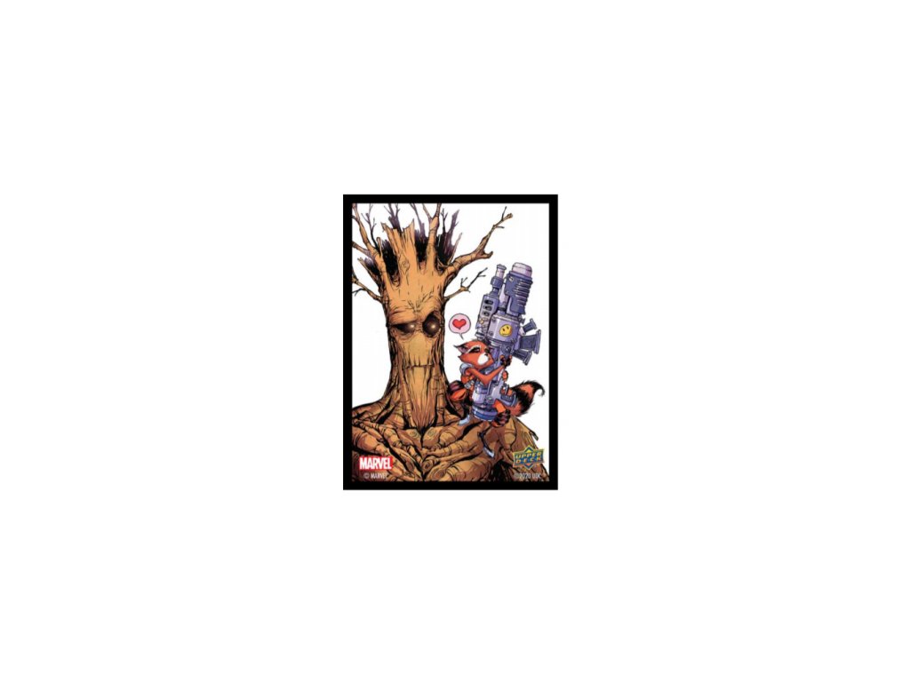 65 pevných matných obalů s motivem ikonického dua Groota a Rocketa z MARVEL universa. Oficiálně licencované společností MARVEL, obaly byly vytvořeny ve spolupráci s výrobcem doplňků Ultra PRO, tudíž zaručená je jejich klasická kvalita a odolnost společně s novým způsobem provedení.