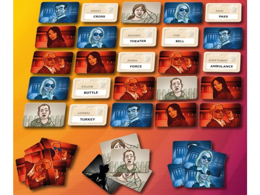 Slovní asociační hra pro dva týmy tajných agentů. Vaším úkolem bude odhalit jména všech agentů vašeho týmu dříve, než tak učiní soupeř. Pozor si však musíte dávat na nájemného vraha, který hru okamžitě ukončí!