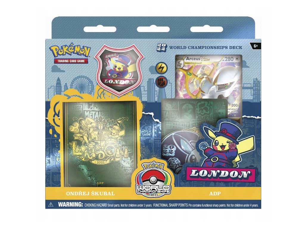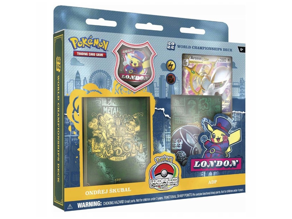 Pořiď si balíček ze Světového šampionátu a hraj jako šampión! Vyber si jeden ze čtyř silných balíčků, každý je přesnou replikou skutečného turnajového balíčku z Mistrovství světa v Pokémon Trading Card Game 2022. Najdeš balíčky založené na těch, které použil juniorský šampion Rikuto Ohashi (Japonsko), seniorní finalista Sebastian Lashmet (Spojené státy), čtvrtfinalista ve vyšší kategorii André Chiasson (Kanada) a šampion vyšší kategorie Ondřej Škubal (Česká republika).