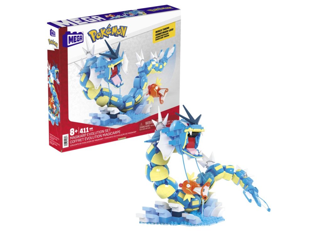 Udělejte si radost tímto setem Magikarp Evolution, který obsahuje sestavitelné figurky Magikarpa a Gyaradose. Postavte Magikarpa a Gyaradose a pak je vystavte v jejich vodním prostředí. Gyarados je mimořádně dobře polohovatelný a je větší než kdy dřív, měří přibližně 50 cm a má 12 spojovacích bodů. Magikarp je vybaven kloubovými ploutvemi pro různé možnosti pózování.