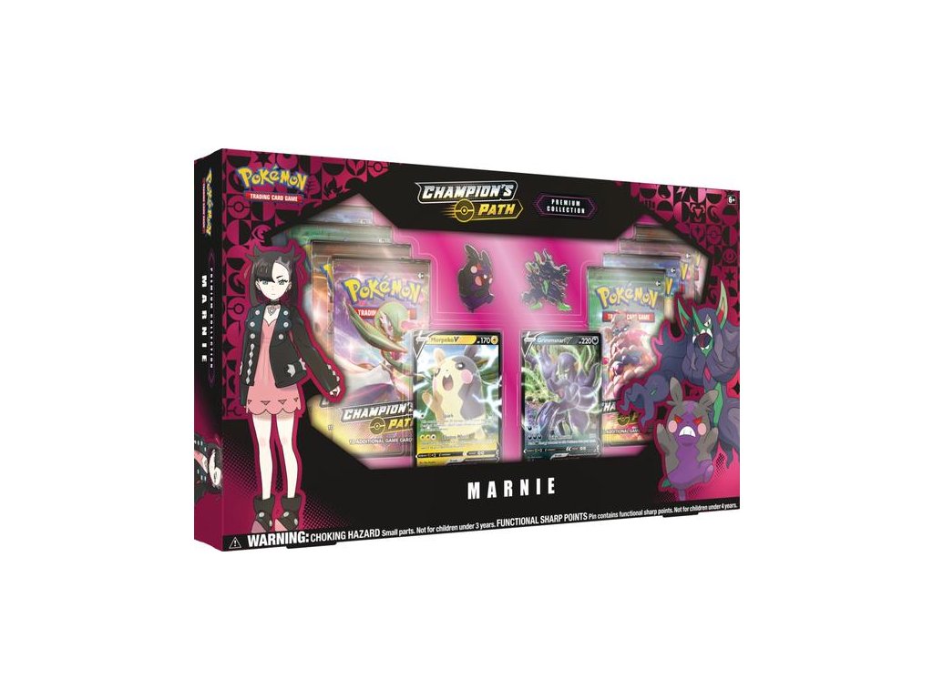 Team Yell ji zbožňuje a její Pokémon ji zpátky vysloužil status jednoho z nejtěžších rivalů — řeč je o Marnie, trenérce veteránce ze Spikemuth! S jejími nebezpečnými Pokémony Morpekem a Grimmsnarlem, Marnie je jedna z největších výzev regionu Galar, která rozhodně neuhne před pořádnou bitvou. Rozšiř si své znalosti a dovednosti s Marnie Special Collection a přidej do svého týmu Morpeko V i Grimmsnarl V. Další překvapení tě pak čekají v pětici booster packů minisérie Champion's Path. Tak se vydej na pouť neonovými ulicemi a vyzvi Marnie!