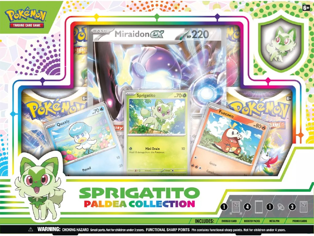 Připravte se na zbrusu nové dobrodružství v regionu Paldea s karetní hrou Pokémon! Pokémoni Sprigatito, Fuecoco a Quaxly se připojí k vaší sbírce jako foilové promo karty a sběratelský "pin" vám umožní ukázat vybraného Pokémona všude, kam půjdete. Objevte ještě více díky boosterům a "oversize" kartě s legendárním Pokémonem Koraidonem nebo Miraidonem jako mocným Pokémonem ex!
