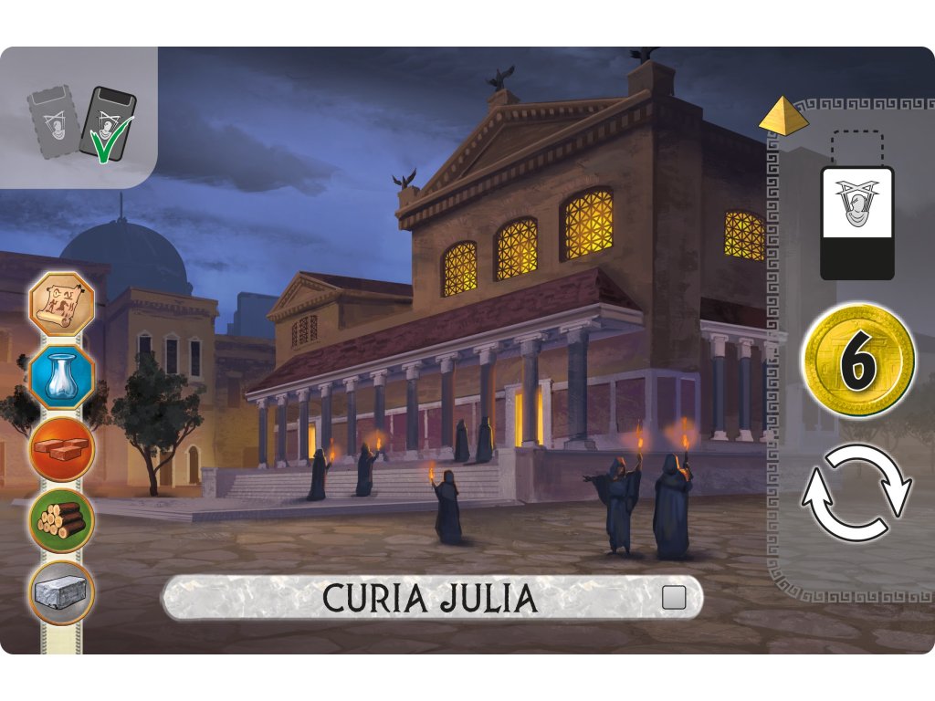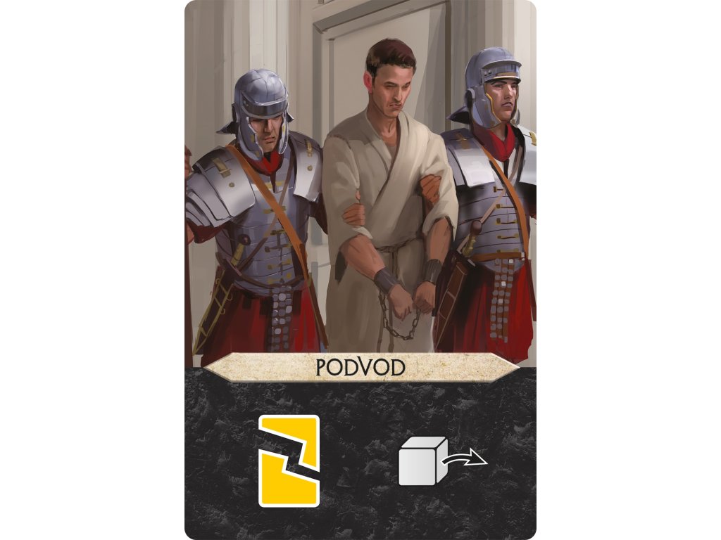 Tyto karty představují senátory, kteří se k vám mohou přidat. Dělí se na dvě kategorie: politici (bílé karty) a spiklenci (černé karty).