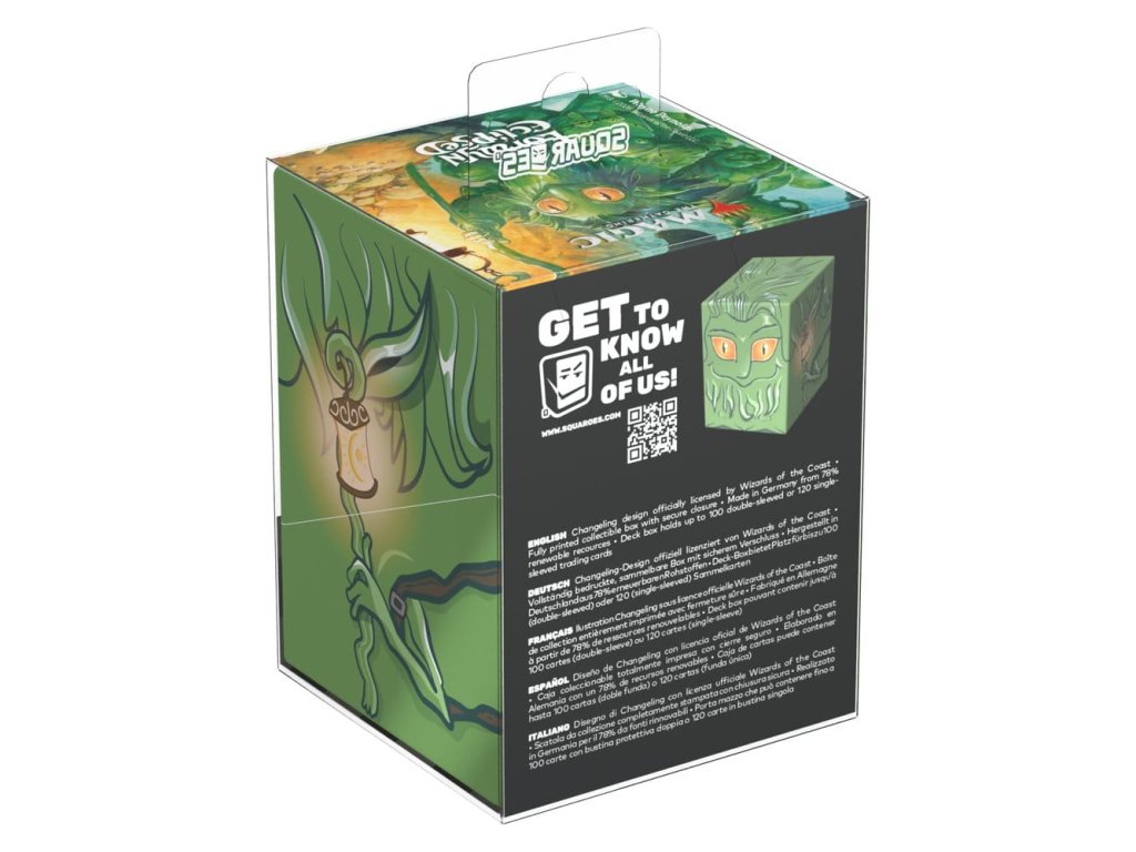 Sběratelská krabička na skladování balíčků TCG, příslušenství pro stolní hry a/nebo sběratelských předmětů. Changeling Squaroe z edice Magic: The Gathering pojme až 100 karet ve dvojitých ochranných obalech, pokud je použita jako krabička na balíčky. Squaroes jsou vyrobeny z 78% obnovitelných zdrojů.