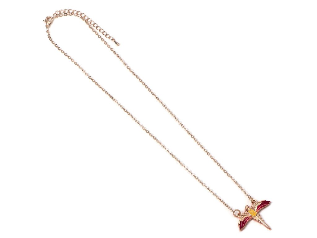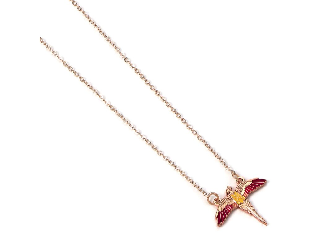Krásný náhrdelník s přívěskem v podobě Fawkese, fénixe profesora Albuse Brumbála z Bradavic. Říká se, že Fawkesova pera byla součástí kouzelnických hůlek Harry Pottera a Voldemorta. Přívěsek je vyroben ze slitiny kovu pozlacené růžovým zlatem a očaruje každého, kdo ho spatří! Součástí balení je řetízek o délce 40 cm s možností nastavit o další 4 cm.Doplňkové parametry