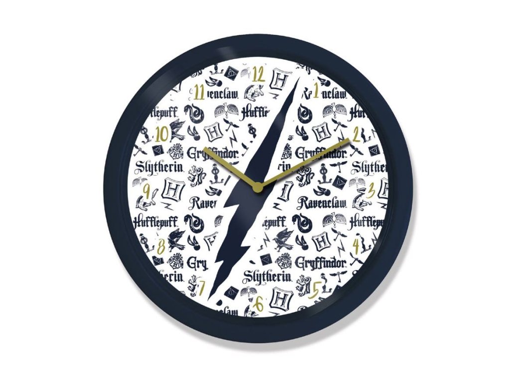 Nástěnné hodiny se symboly přímo z kouzelnického světa Harryho Pottera od J. K. Rowlingové. Najdeme na nich názvy a symboly školních kolejí, relikvie smrti a mnoho dalších.