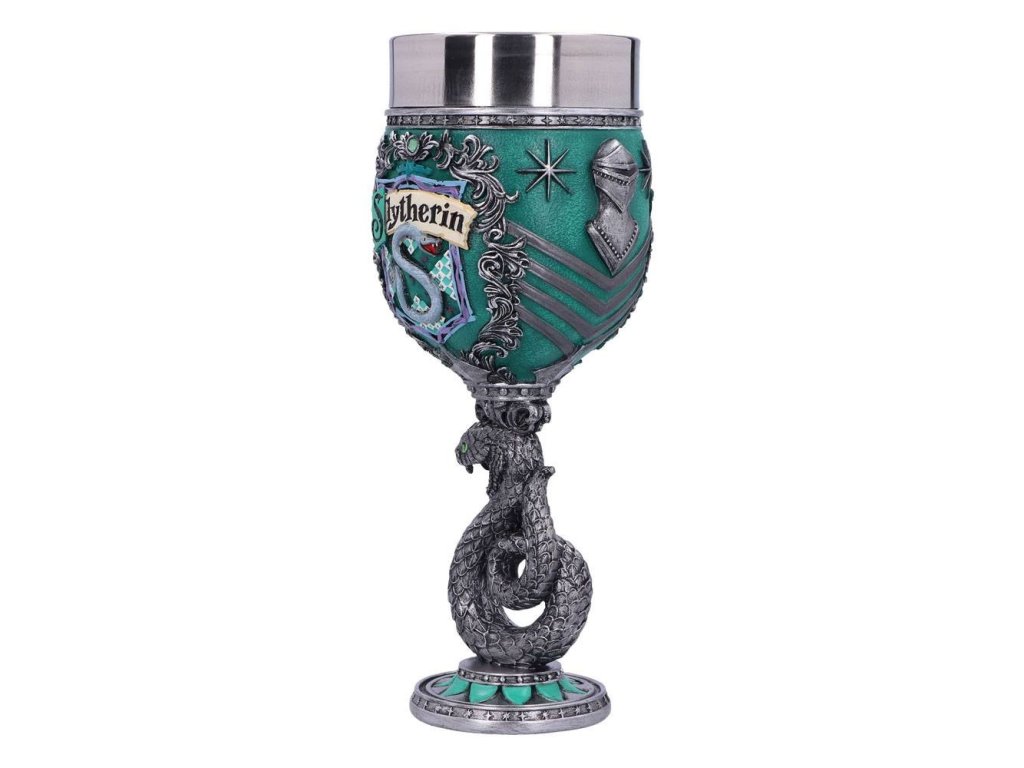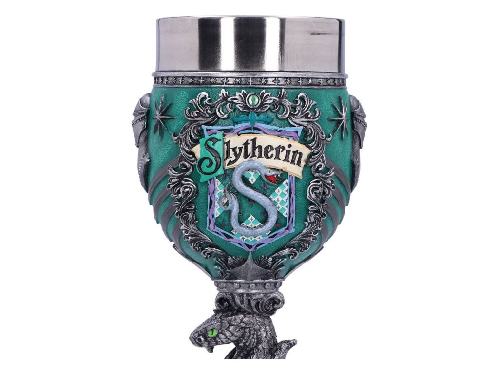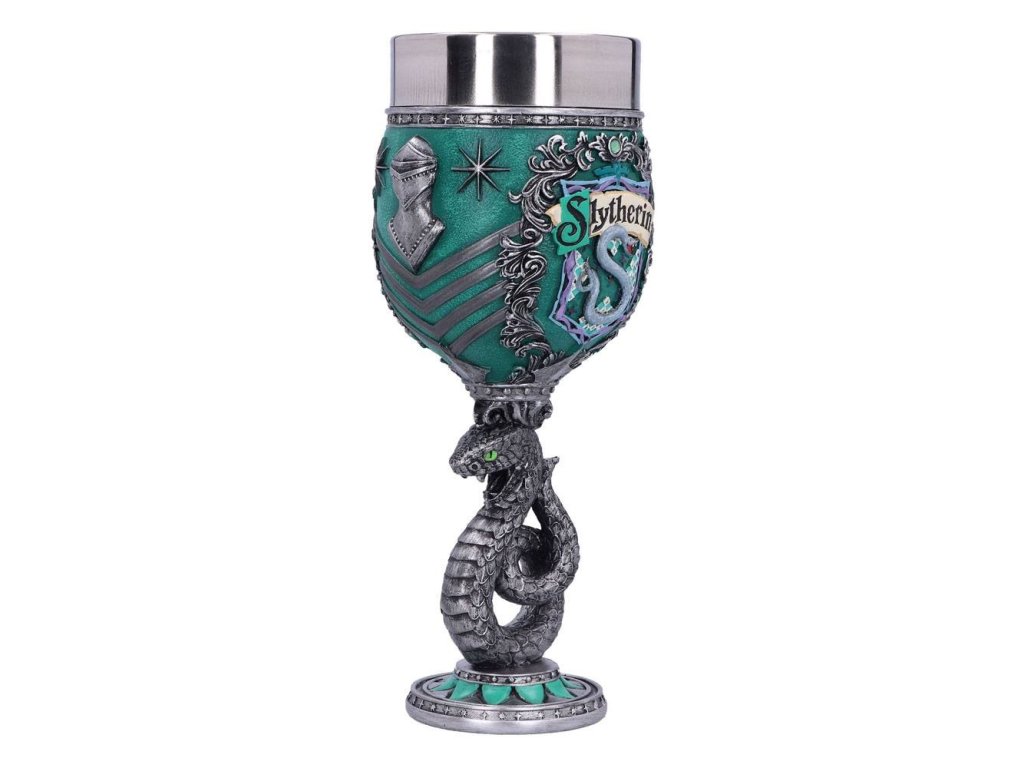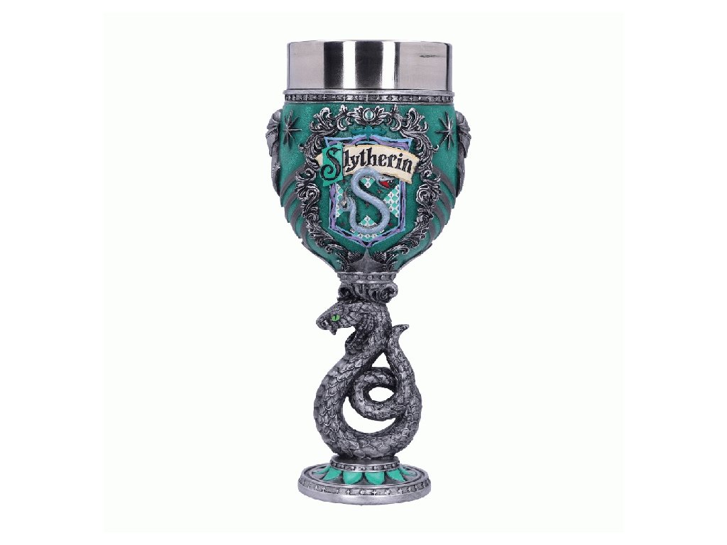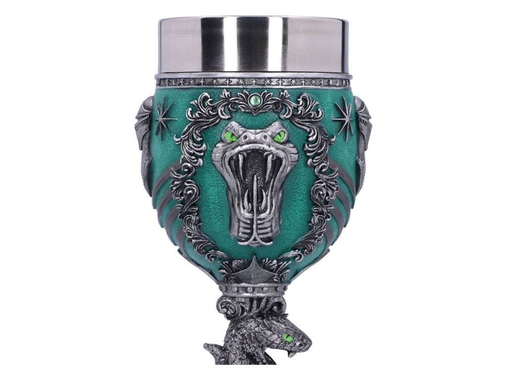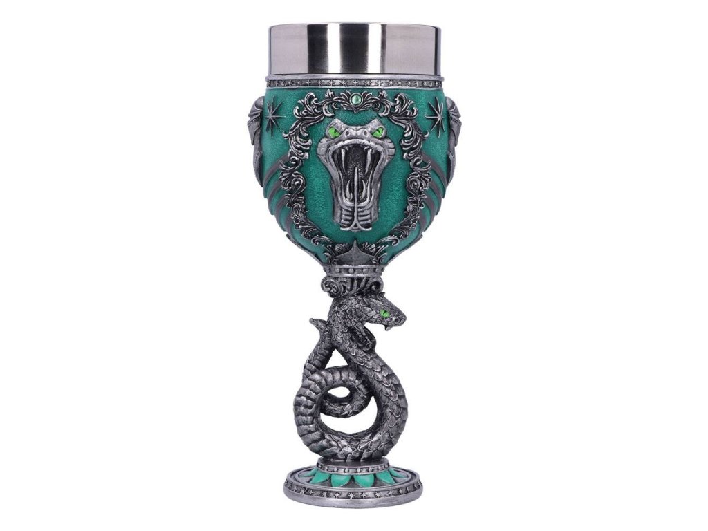 Zelený hadí pohár pro čarodějky, mágy a všechny kouzly nadané studenty Zmijozelu, slovutné to koleje z Bradavic! Dopřejte si oblíbený nápoj a zapijte dobrodružství Harry Pottera. Ručně malovaný pohár ze syntetické pryskyřice má vyjmutelný nerezový insert pro snadnou údržbu. Pohár není vhodný do mikrovlnné trouby ani do myčky nádobí.Doplňkové parametry