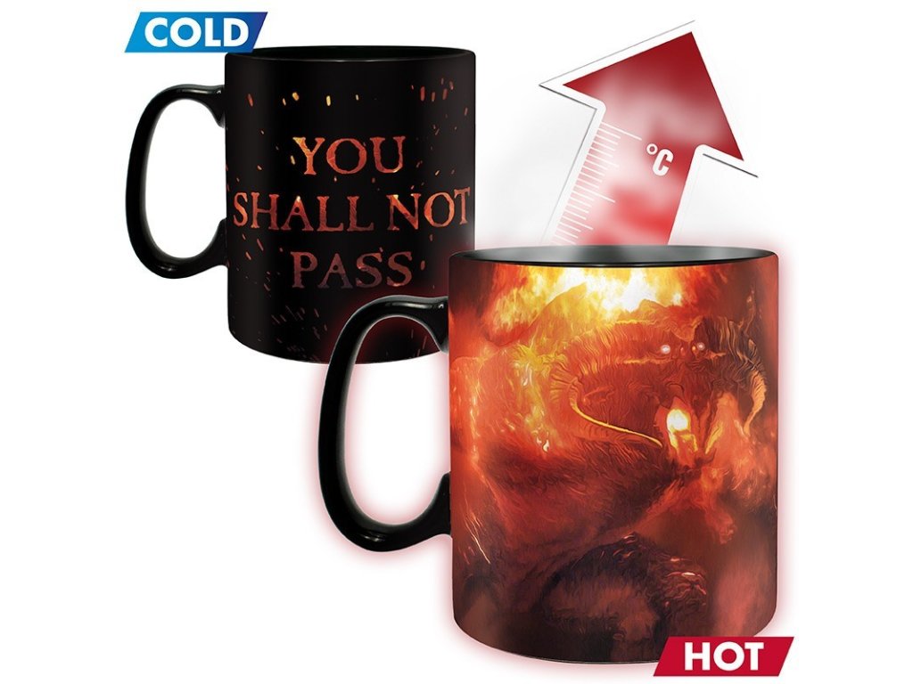 Neprojdeš dál! Hrnek pro fanoušky Pána prstenů změní grafiku pokaždé, když do něj nalijete teplý nápoj! Vychutnejte si svůj čaj, kakao či kávu, a sledujte Gandalfa Šedého v souboji s balrogem na můstku v trpasličí Morii! Hrnek není vhodný do mikrovlnné trouby ani do myčky nádobí.Doplňkové parametry