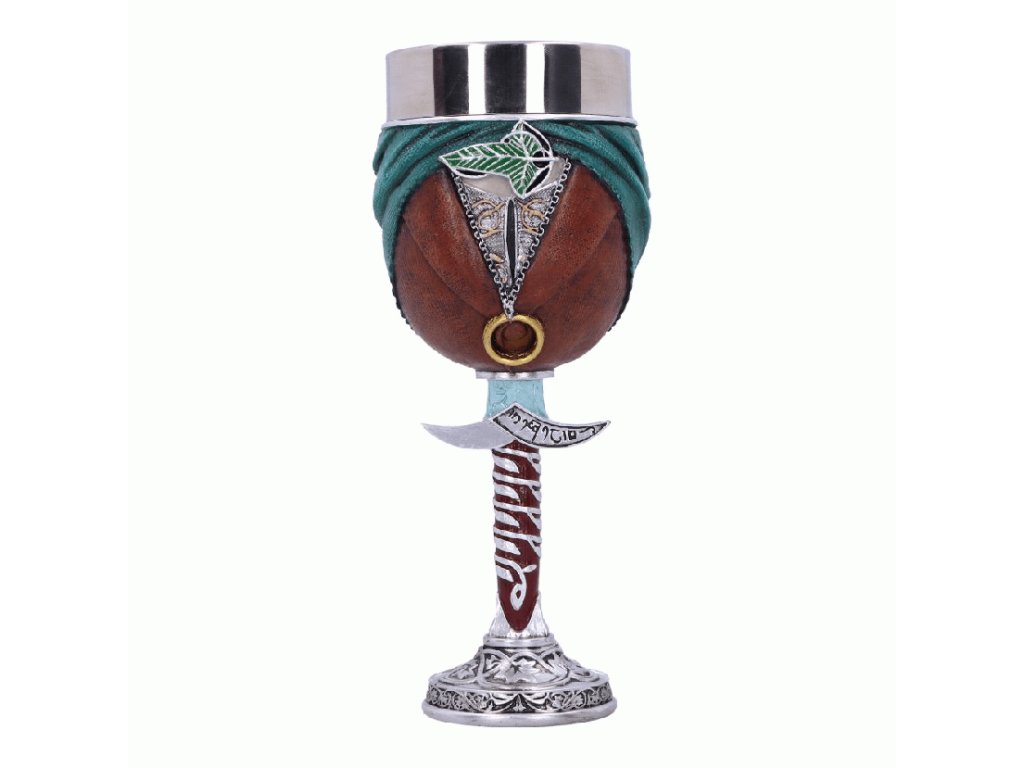 Pozvedněte Frodův pohár a připijte na dobrodružnou výpravu Společenstva prstenu! Pohár v podobě Frodova elfího pláště na stopce tvarované do mečíku Žihadla zdobí řada krásných detailů, jako je např. Prsten moci. Na zadní straně poháru se nachází elfí slova Galadriel: I ten nejmenší človíček může změnit chod budoucnosti. Jedinečný dárek pro fanoušky Pána prstenů! Nerezová vnitřní část je vyjímatelná, což umožňuje jeho snadnou údržbu. Pohár není radno mýt v myčce nádobí a ohřívat v mikrovlnné troubě!Doplňkové parametry