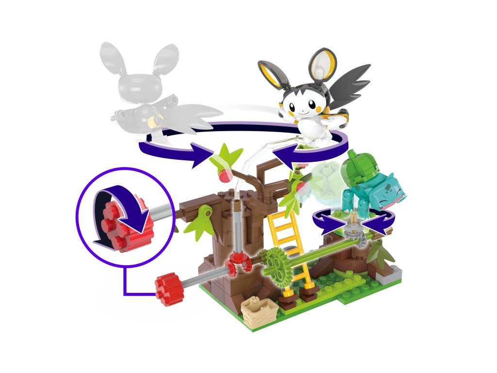 S touto stavebnicí s inovativní "Motion Brick" můžete vzlétnout a sklízet bobule. Sledujte, jak Emolga létá kolem stromu s bobulemi, zatímco Bulbasaur se otáčí pod ní. Kombinujte s dalšími stavebnicemi MEGA a vytvořte rozšířený svět Pokémonů s pohybem; každá se prodává samostatně.