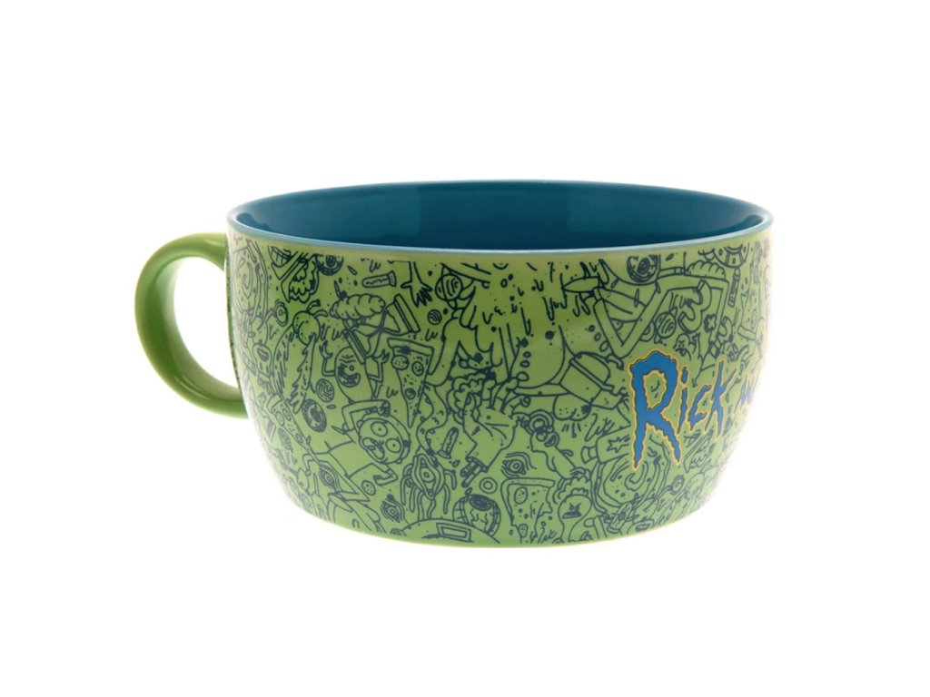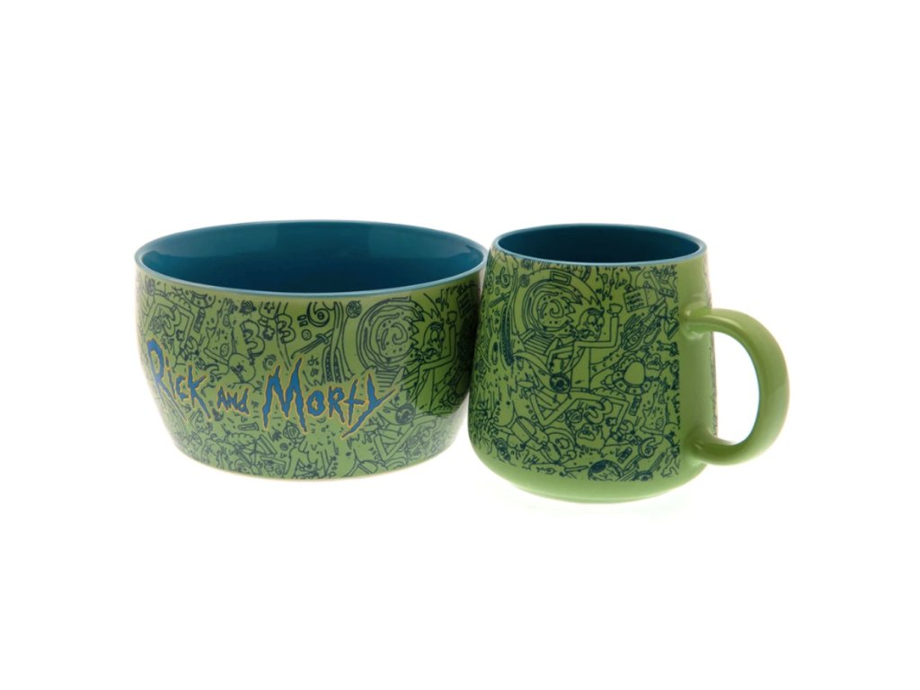 Jedinečná dárková sada pro snídani fanoušků amerického animovaného seriálu Rick a Morty obsahuje skvělý zelený hrnek a misku! Posilněte se ve společnosti svých oblíbených hrdinů.