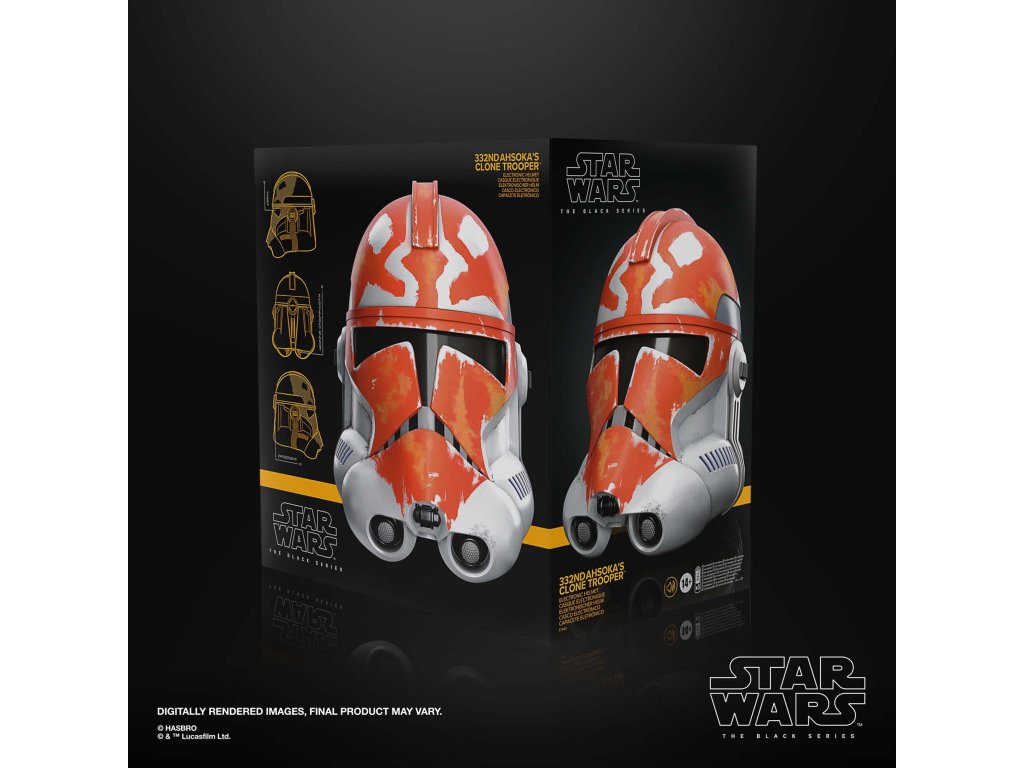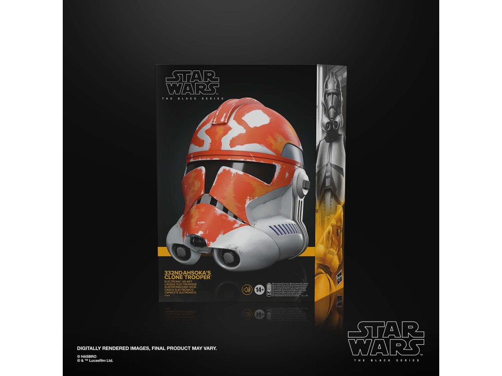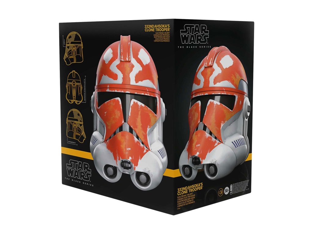 Tato helma z řady Black Series v měřítku 1:1 je díky vysoce detailnímu dekoru, designu inspirovanému seriálem a nastavitelnému uchycení ikonickým doplňkem sbírky všech fanoušků Star Wars. Po stisknutí tlačítka je hlas uživatele elektronicky zkreslen tak, aby zněl jako hlas klonového vojáka!