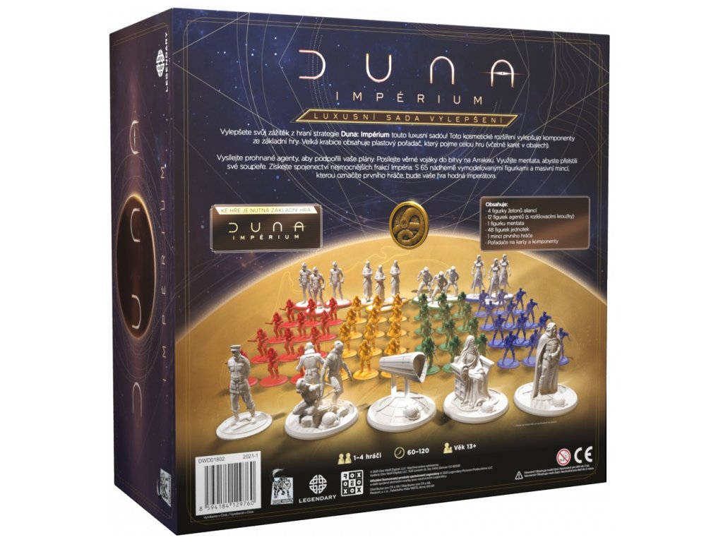 Duna: Impérium - Luxusní sada vylepšení je rozšiřující sada plastových figurek pro hru Duna: Impérium. Jedná se o velkou krabici obsahující figurky a pořadače, do kterých můžete uschovat svou hru.