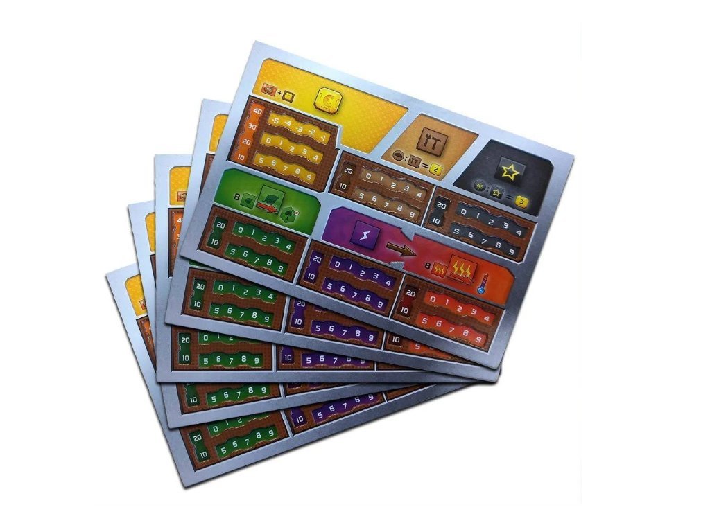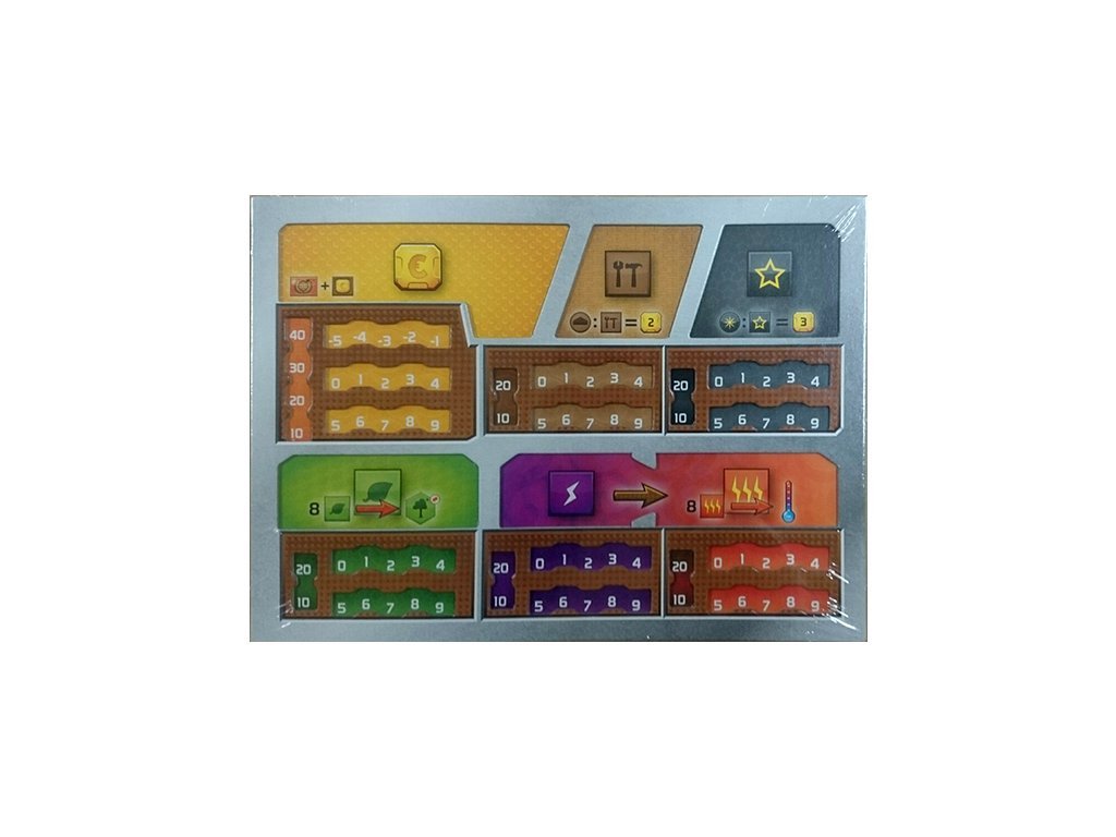 Vylepšené desky ocení každý hráč, který si jednou zahrál Mars: Teraformaci. Žádné kostičky už se vám nebudou přesouvat mezi kolonkami! Vše má pěkně svůj „chlívek“ a když drknete do stolu, vše zůstane na svém místě. Desky jsou z několikavrstvého kartonu a v balení jich je pět.