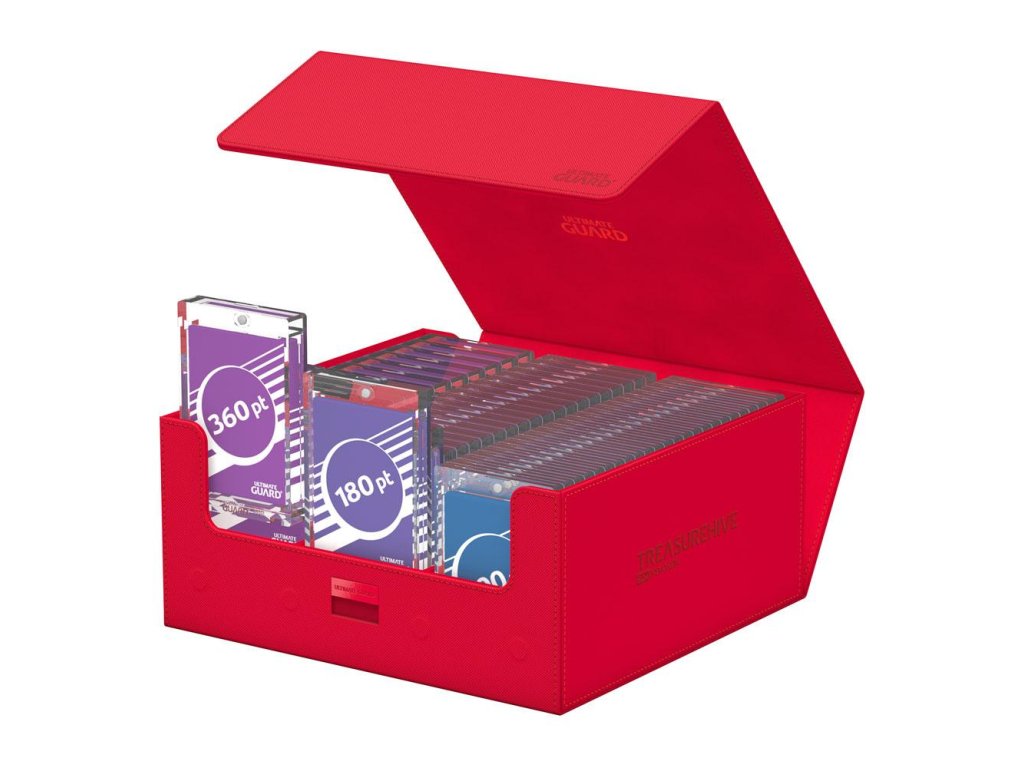 Nejnovější přírůstek do Hive rodiny od Ulitmate Guard: nový Treasurehive! Je speciálně navržen pro uložení až 90 magnetických holderů Ultimate Guard (35pt). Alternativně lze do této elegantní schránky na poklady uložit také více než 370+ Toploaderů, 990 karet s dvojitým obalem nebo různé balíčky a pouzdra na karty Ultimate Guard, aby byly vaše nejcennější a nejvzácnější karty chráněny před jakýmkoli poškozením.