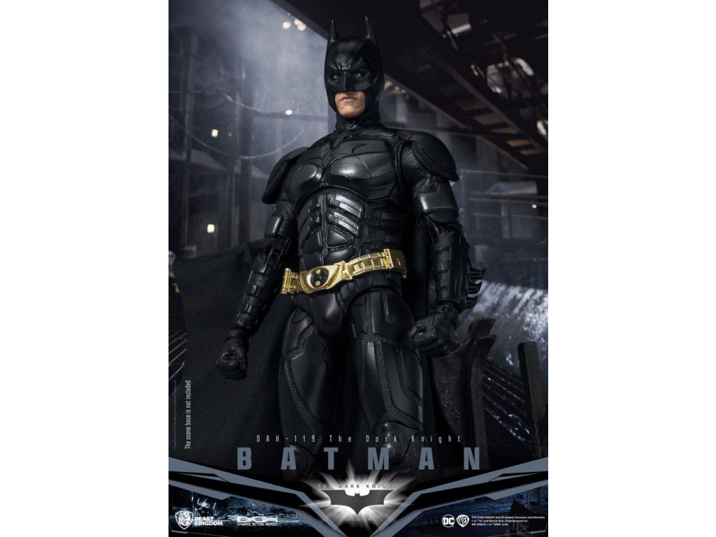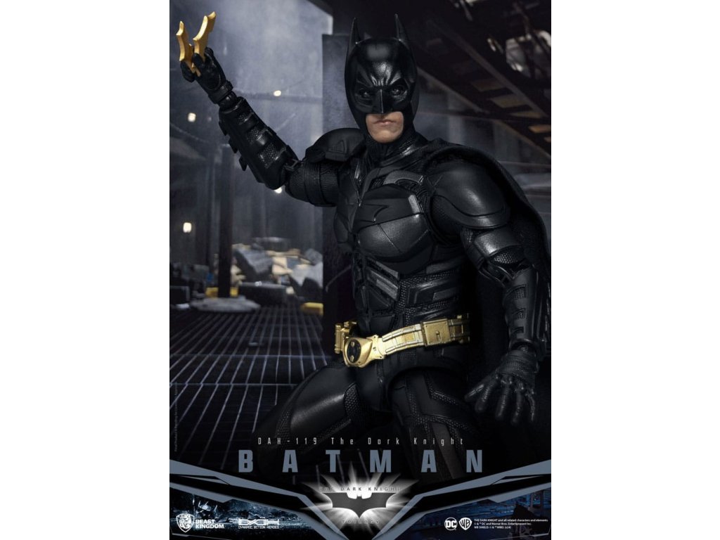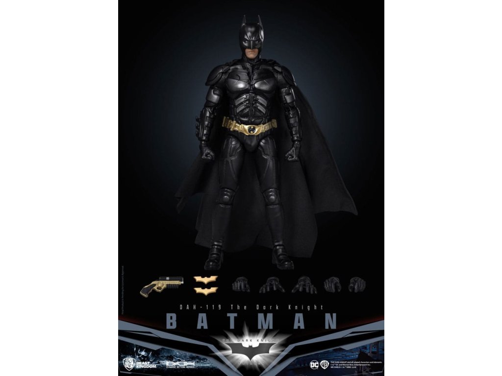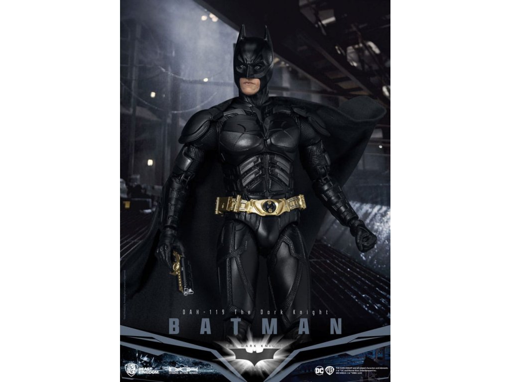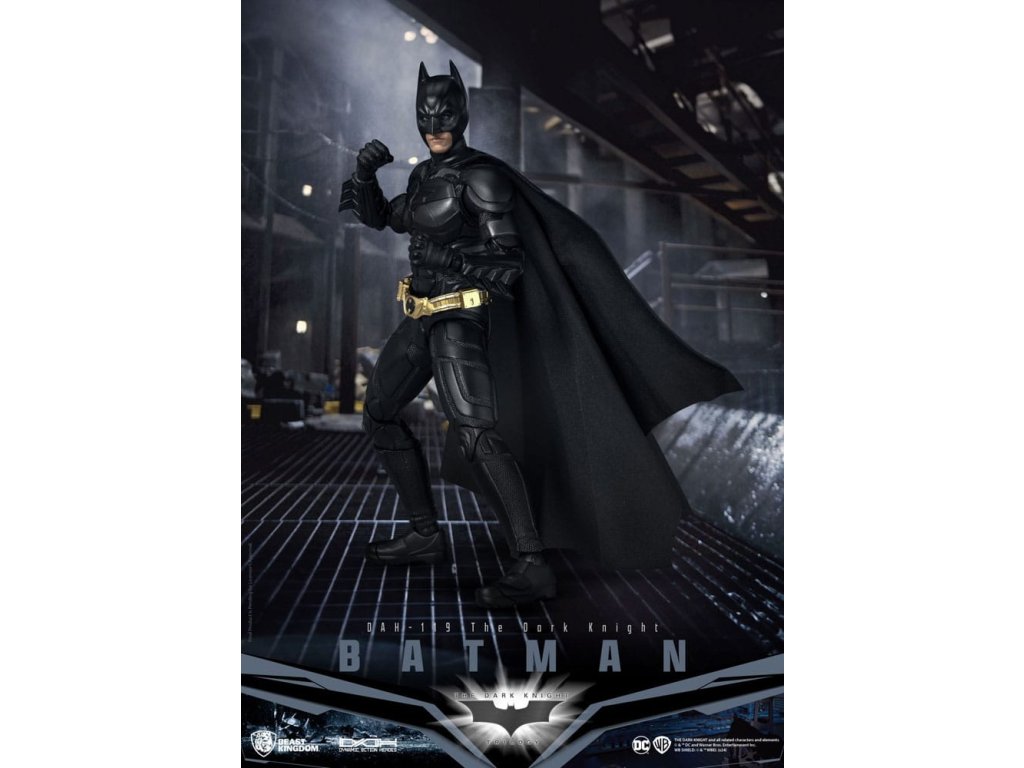Temný rytíř je u fanoušků Nolana a nadšenců Batmana široce považován za vrchol batmanovských filmů. Toto filmové mistrovské dílo přesahuje typický superhrdinský příběh a zaměřuje se na hluboké emoční břemeno a morální zápasy hrdiny, čímž vytváří hluboké spojení s diváky. Nolanova ztvárnění Batmana dosáhlo ikonického statusu a nabízí bezprecedentní hloubku a rezonanci. Beast Kingdom je hrdý na to, že může odhalit nejnovější prvek ve své uznávané řadě DAH (Dynamic 8ction Heroes) - DAH-119 Batman (The Dark Knight). Tato figura se vyznačuje detailně zpracovaným modelem hlavy, který přesně zachycuje podobu Christiana Bale jako Batmana. Modernizovaný obrněný oblek je věrně znovu vytvořen s pečlivou pozorností k detailům, což zvýrazňuje znak netopýra a definované svalstvo. Klasický černý plášť vyrobený z prémiové látky, zvyšuje rozměrovost figury. Díky více než 22 bodům členění, tato figura umožňuje sběratelům Batmana pózovat v ikonických postojích z filmu, což z ní dělá nezbytný doplněk jakékoliv sbírky.